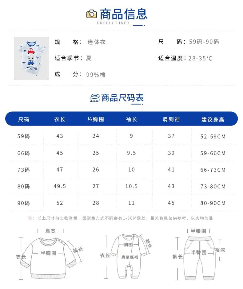 依爾嬰嬰兒連體衣夏季短袖純棉卡通小汽車爬服新生兒衣服夏裝哈衣;淺藍小汽車;59cm 0-3MAbout 依爾嬰旗艦店