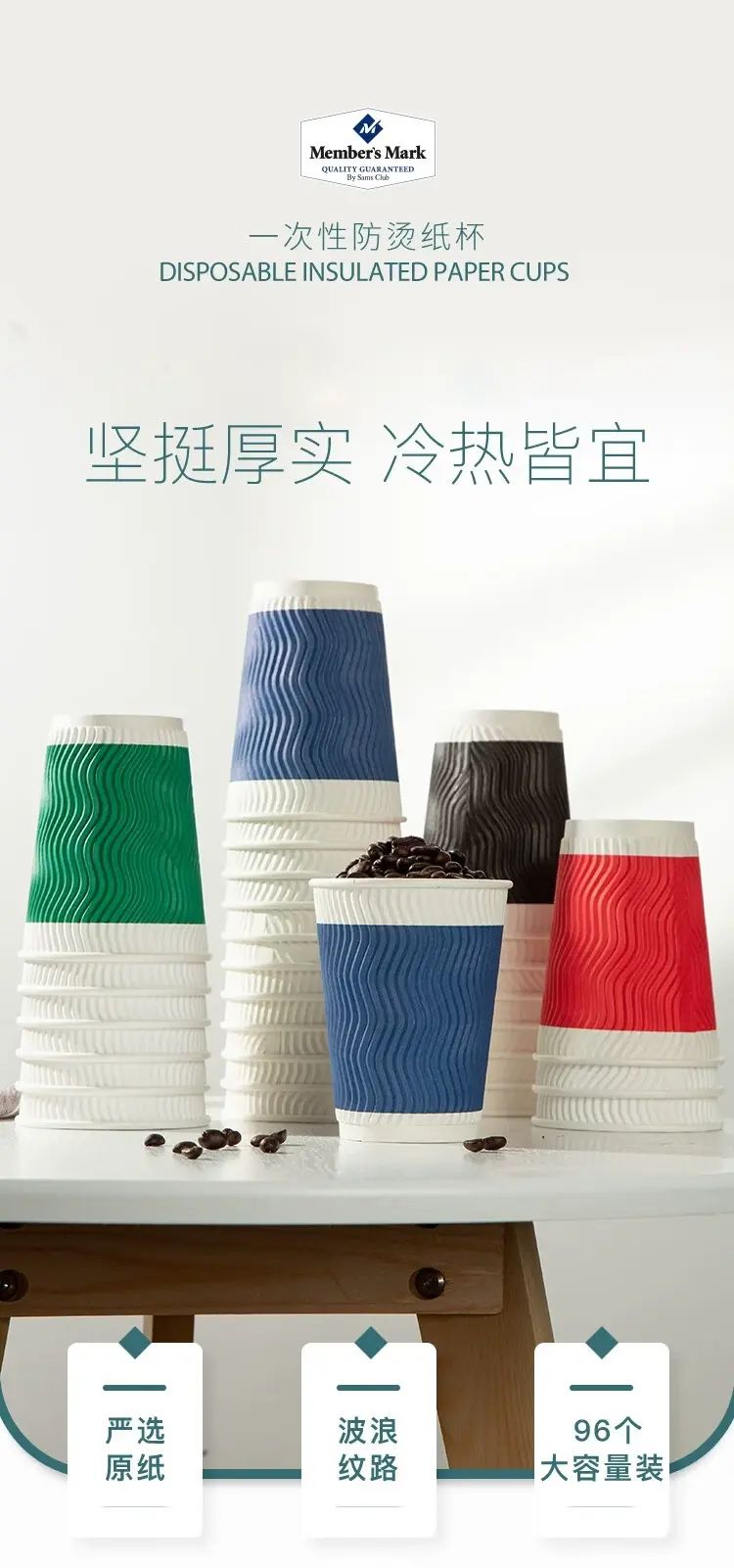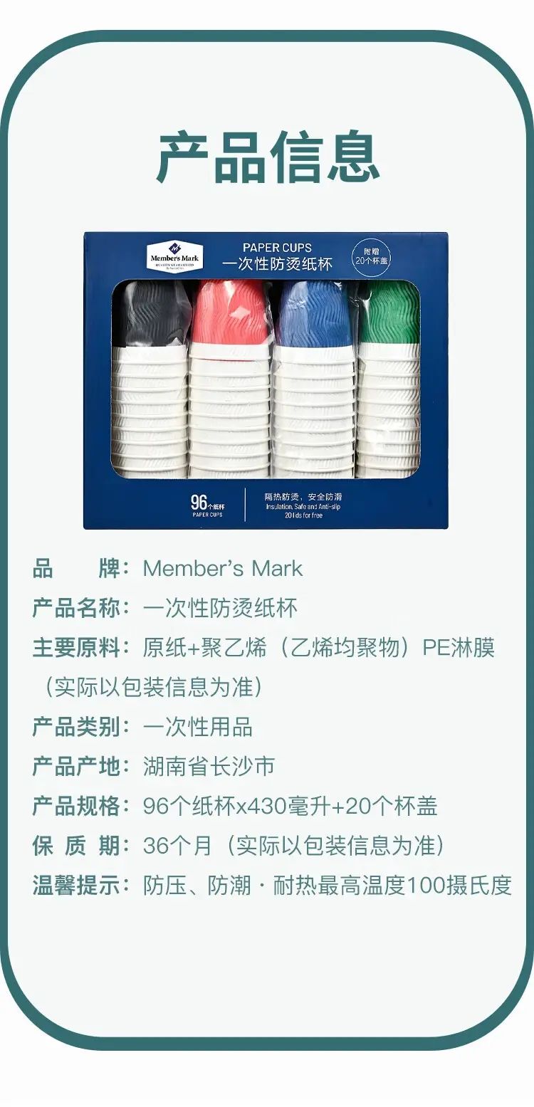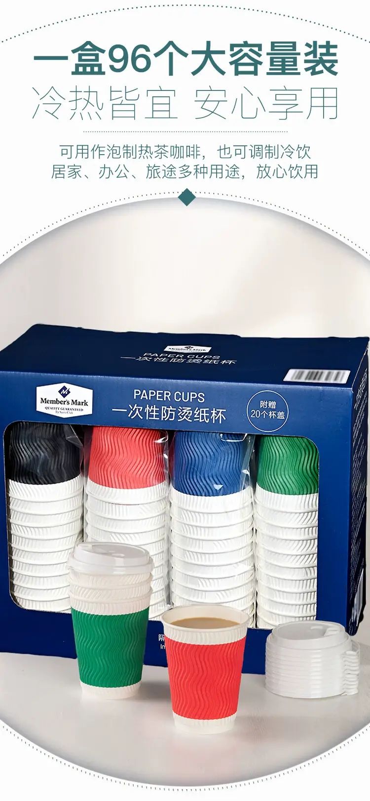 Description 山姆会员商店正品 一次性防烫纸杯430mLX96只+20个杯盖 家用纸杯;一次性防烫纸杯430mL