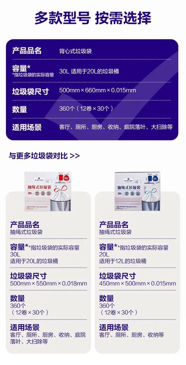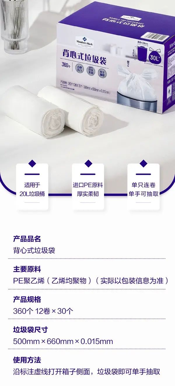 Description 山姆会员商店正品 MM背心式垃圾袋30L 山姆超市家用一次性垃圾袋;背心式垃圾袋30L
