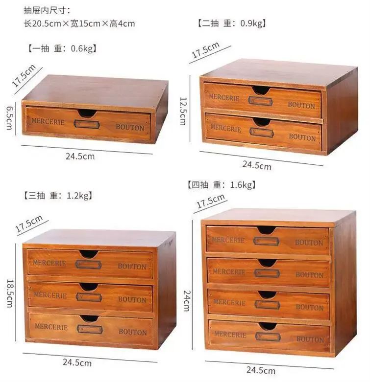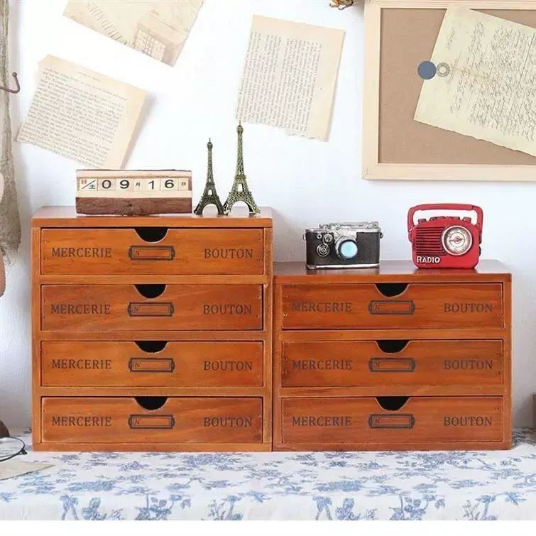 | Description | 复古木质抽屉式收纳盒抽屉柜多功能杂物桌面小箱子桌上整理收纳柜;;颜色分类:复古色双层(带字母) |