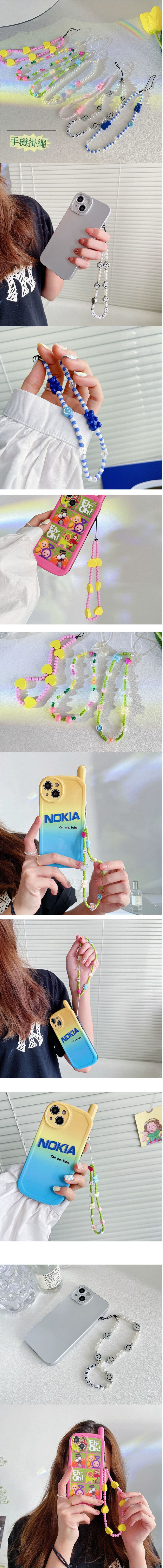 手機掛繩【白珍珠銀色笑臉【手機鏈】#Q901007612