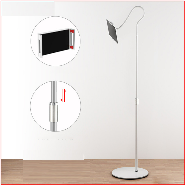 手機平板通用落地伸縮支架(白色-手機平板通用夾)#Q901007676