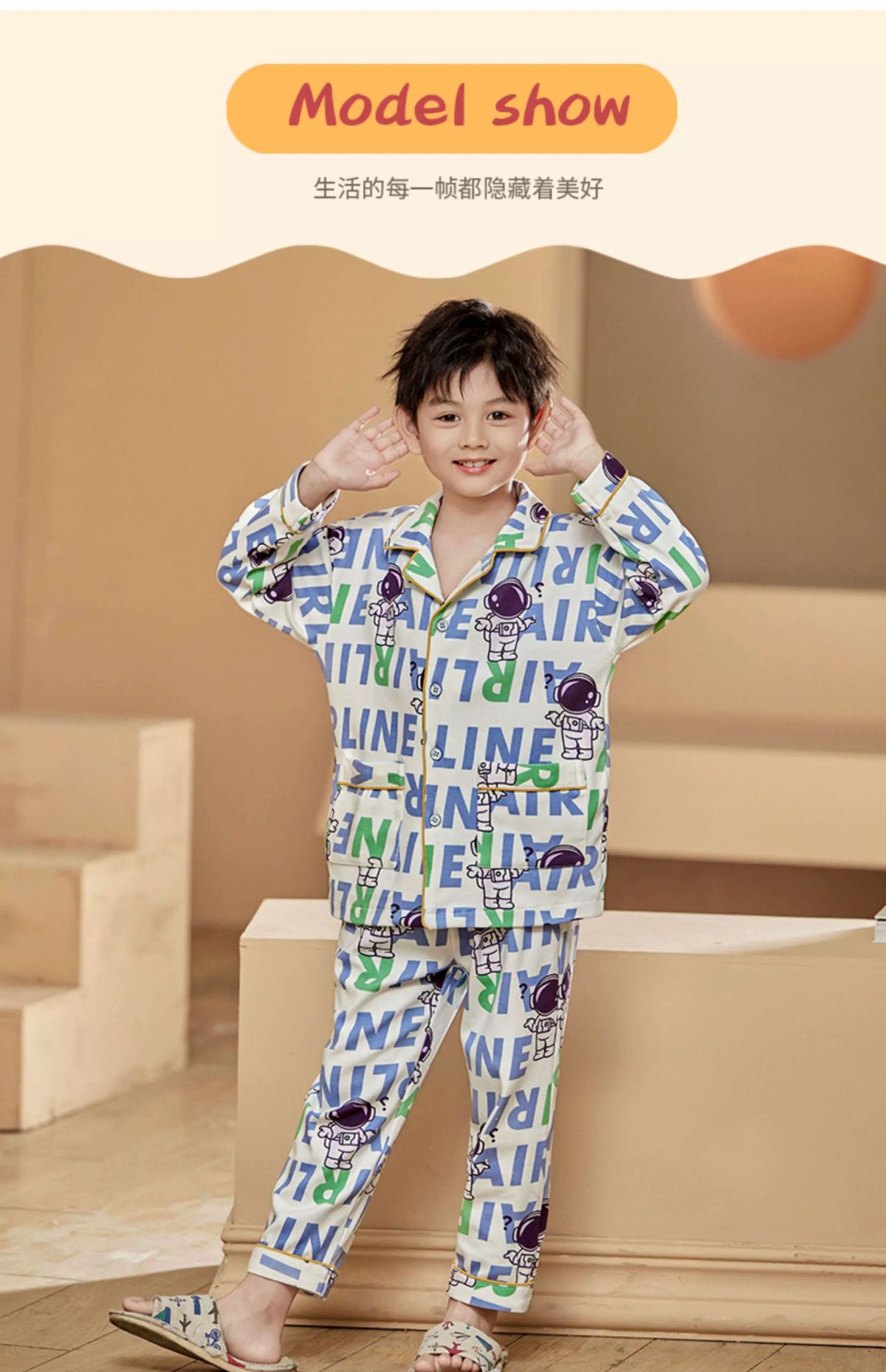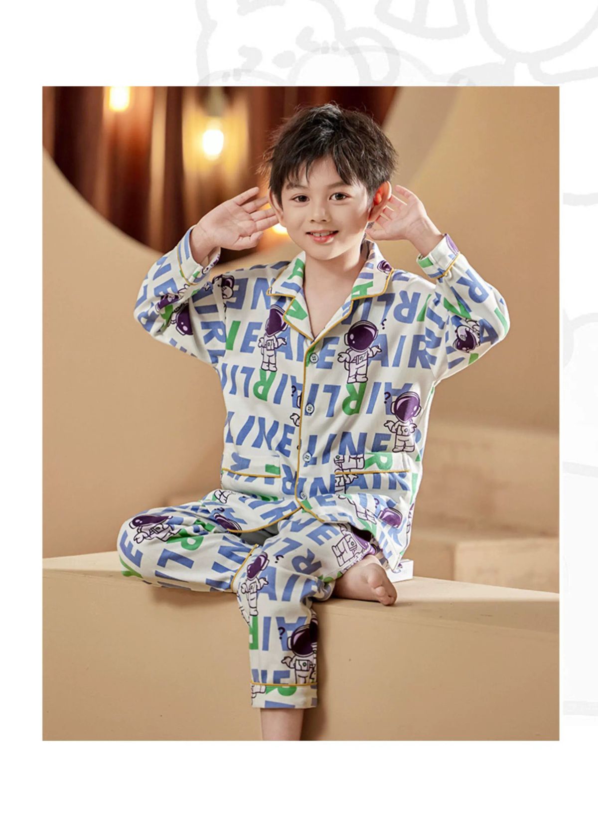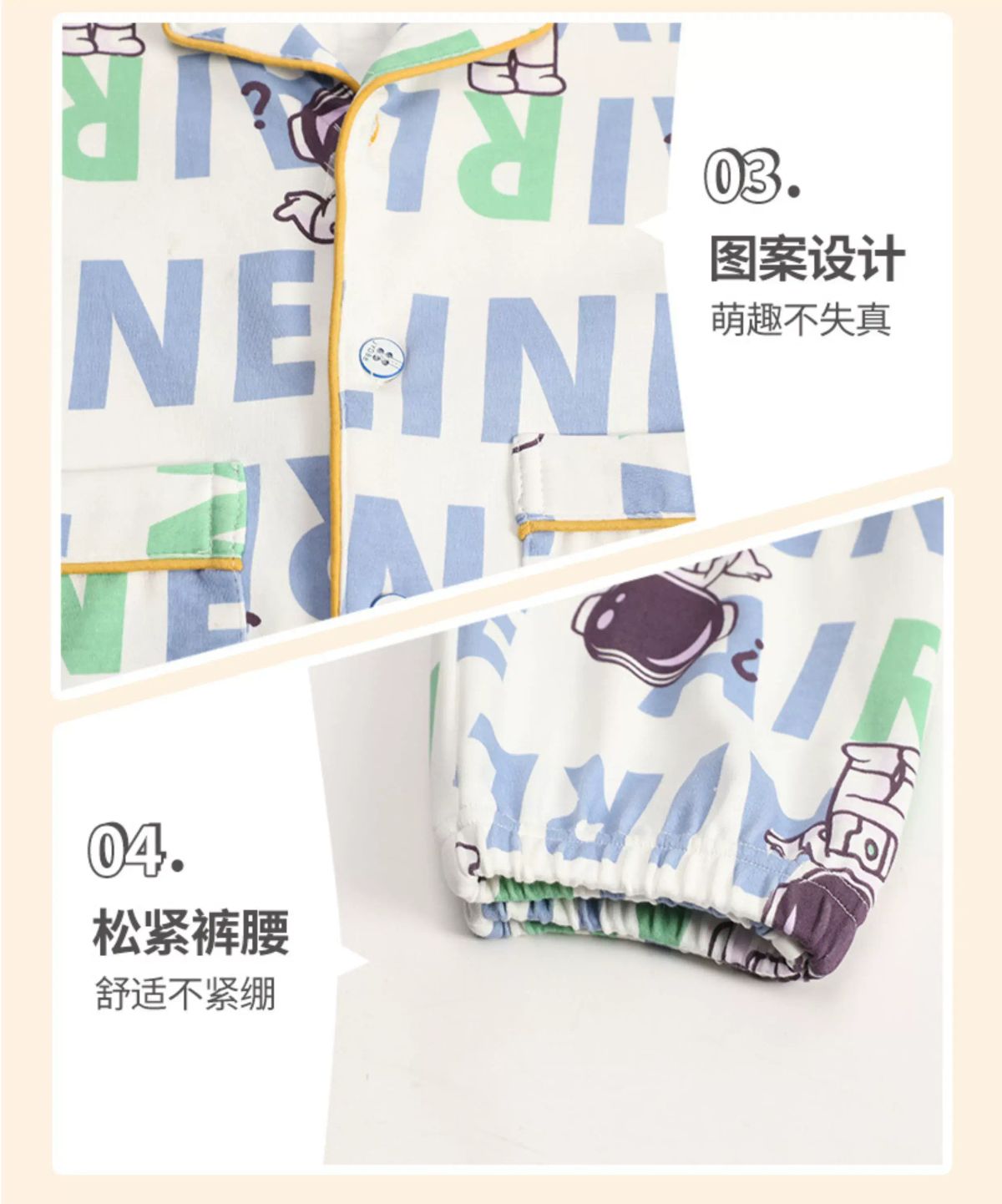 纯棉睡衣新款春秋季儿童开衫套装男童柔软透气夏季长袖休闲;;尺码:10;颜色分类:CKE-K0882About 四海一家商貿