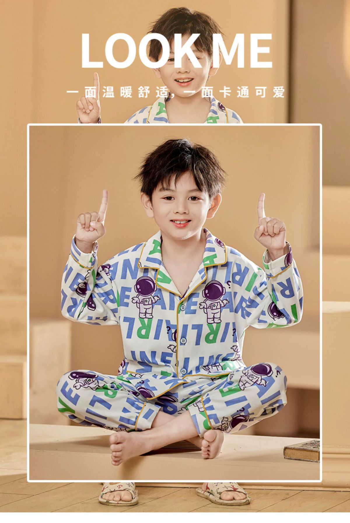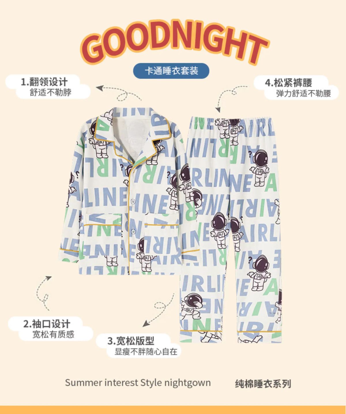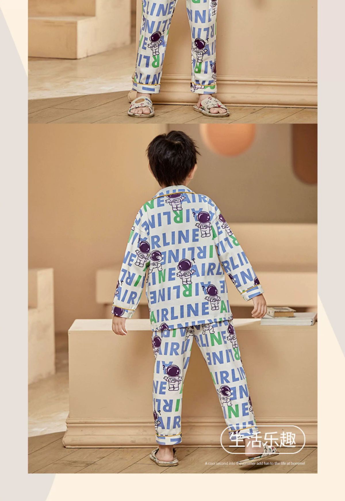 纯棉睡衣新款春秋季儿童开衫套装男童柔软透气夏季长袖休闲;;尺码:10;颜色分类:CKE-K0882About 四海一家商貿