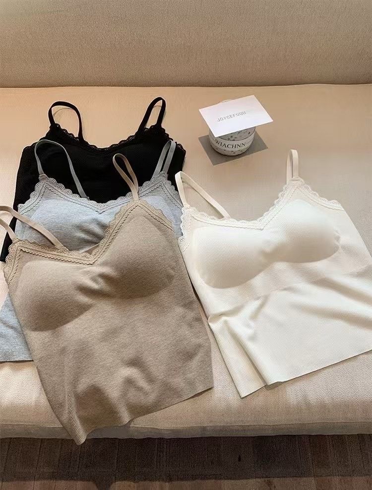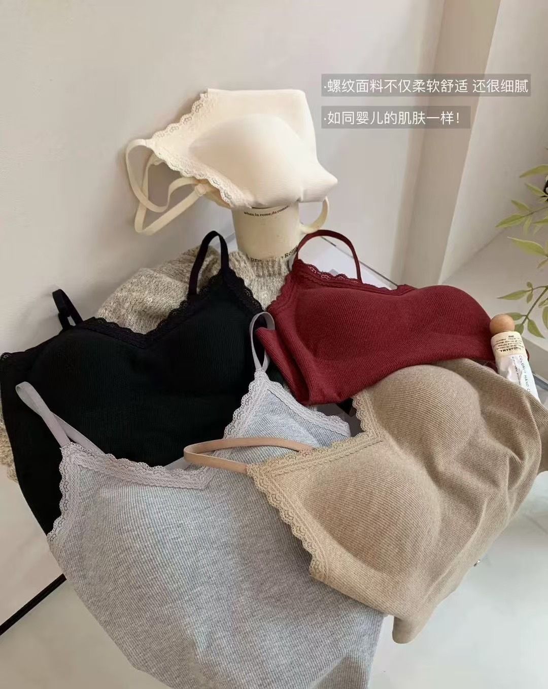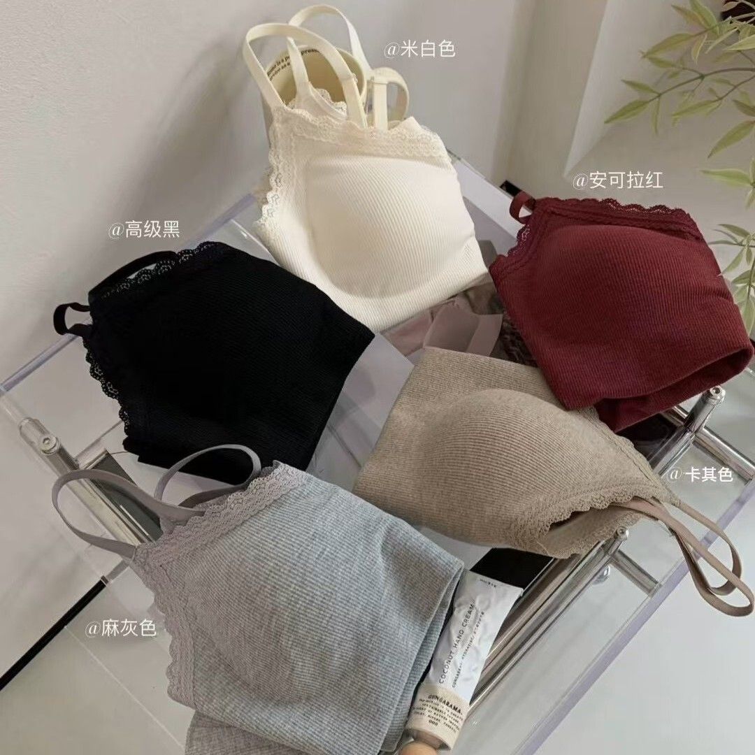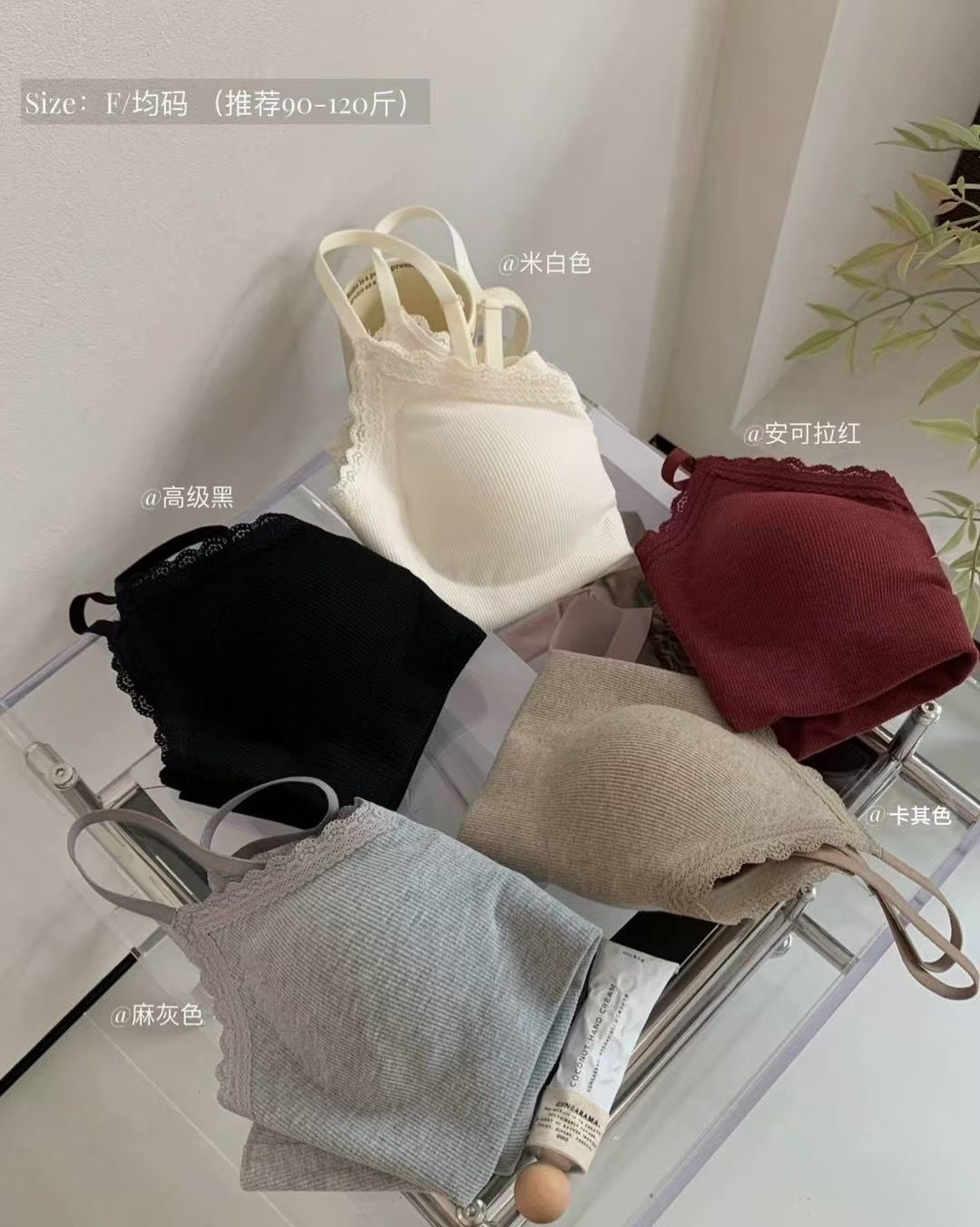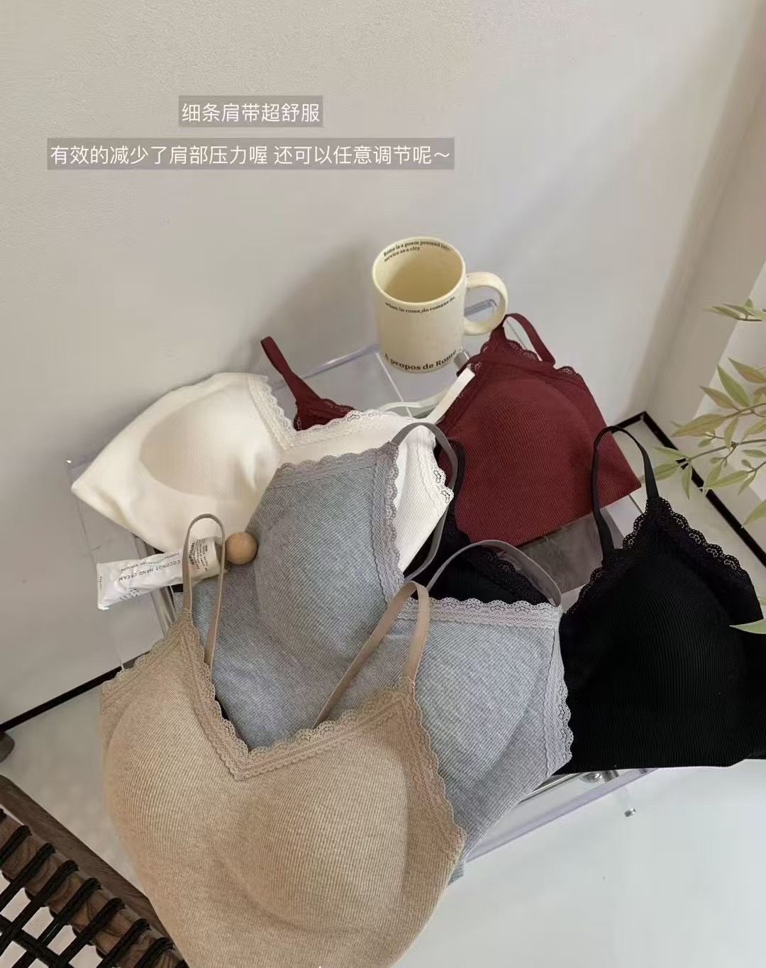 纯欲风性感蕾丝边吊带背心女带胸垫法式V领一体文胸内搭打底螺纹;;尺码:均码【80-130斤】;颜色分类:灰色About 四海一家商貿