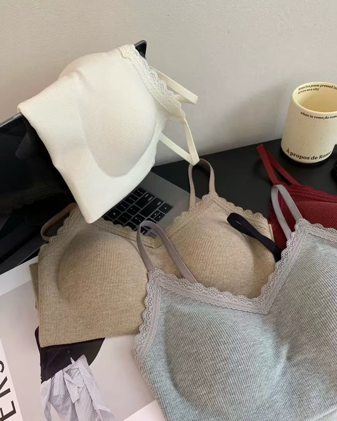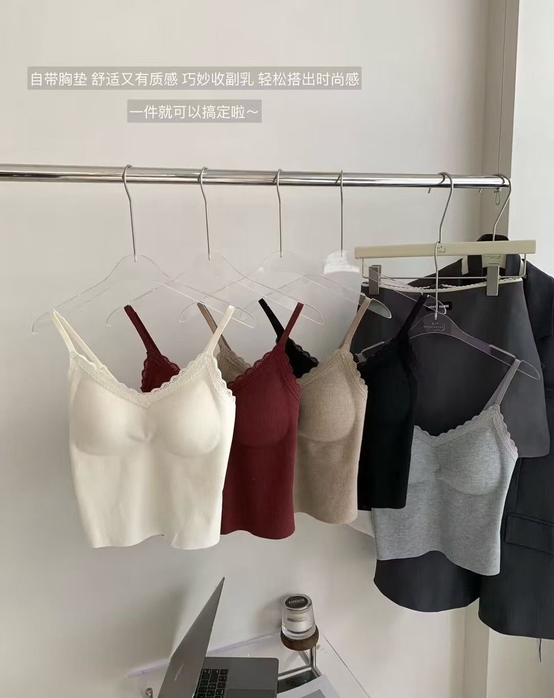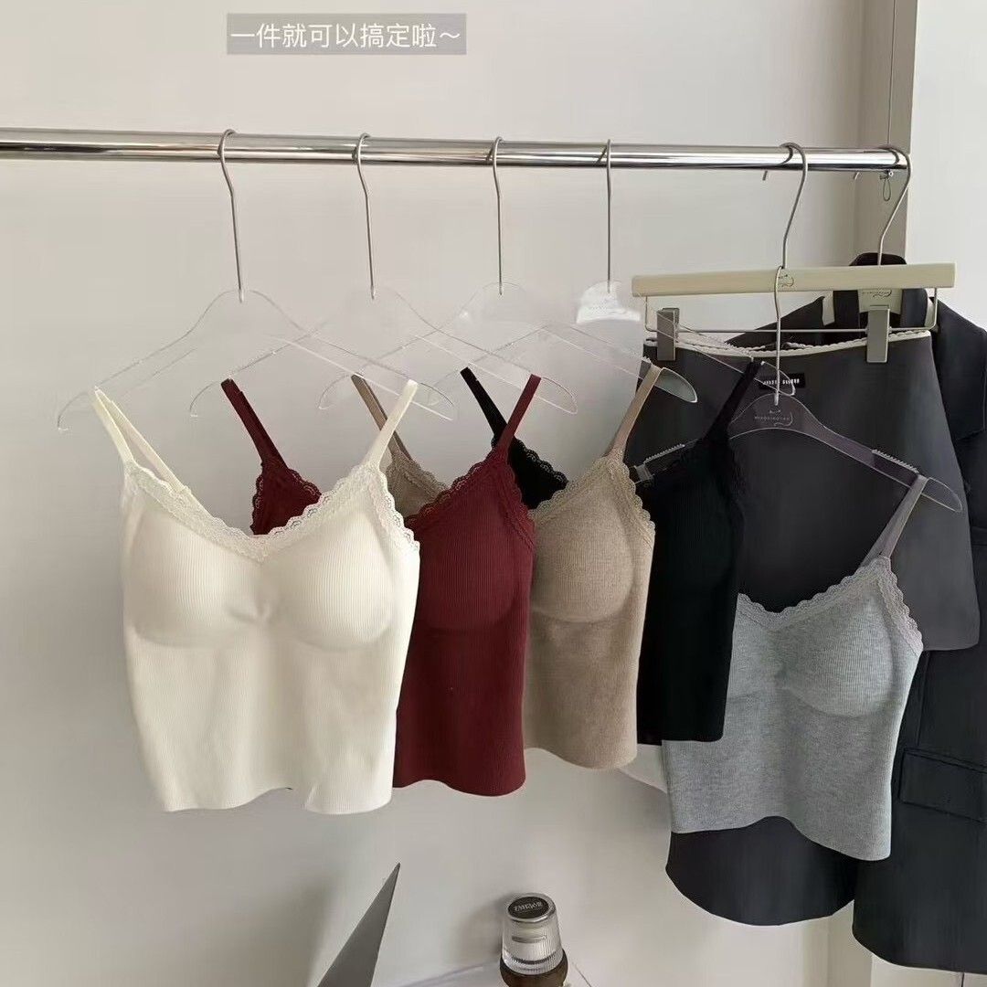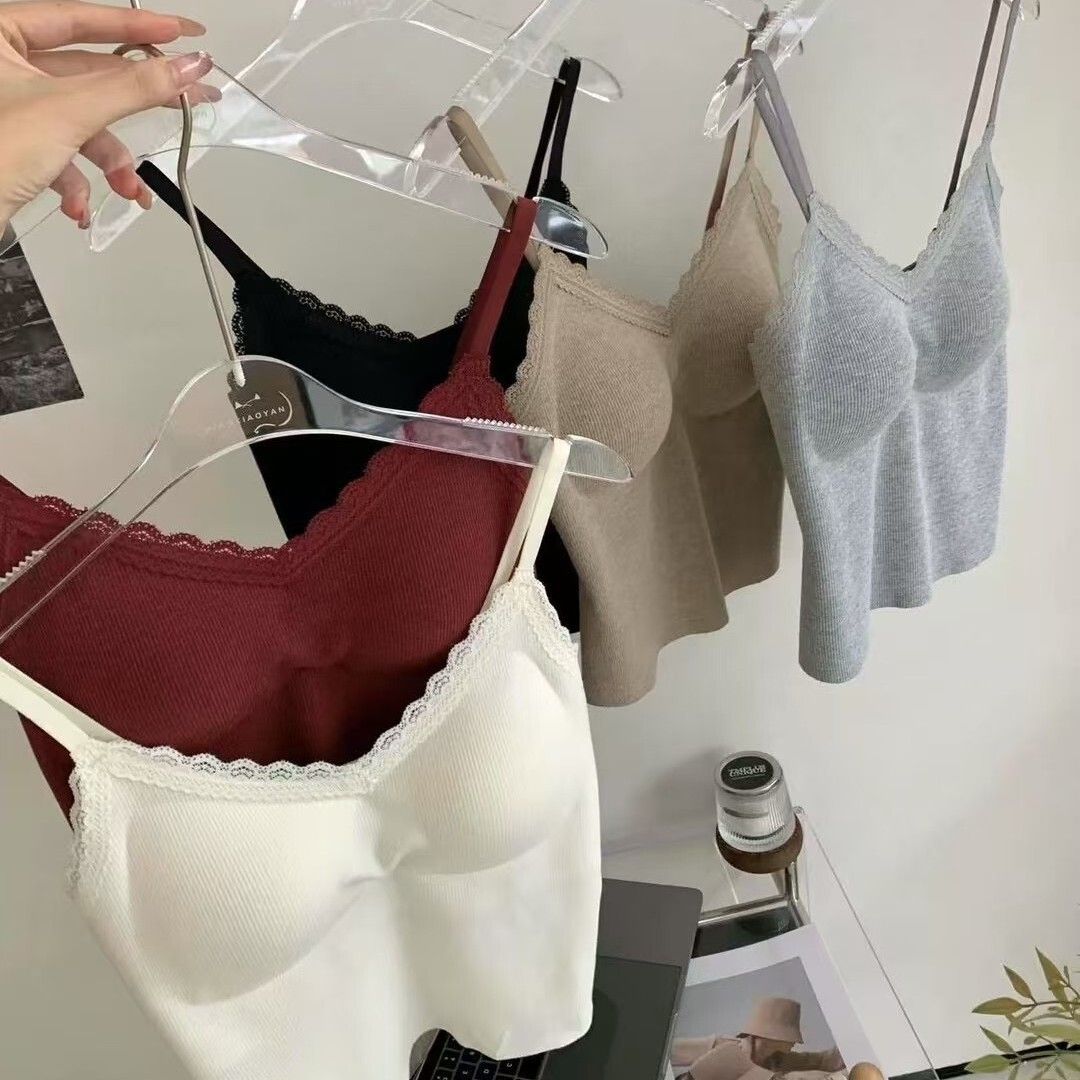 纯欲风性感蕾丝边吊带背心女带胸垫法式V领一体文胸内搭打底螺纹;;尺码:均码【80-130斤】;颜色分类:灰色About 四海一家商貿