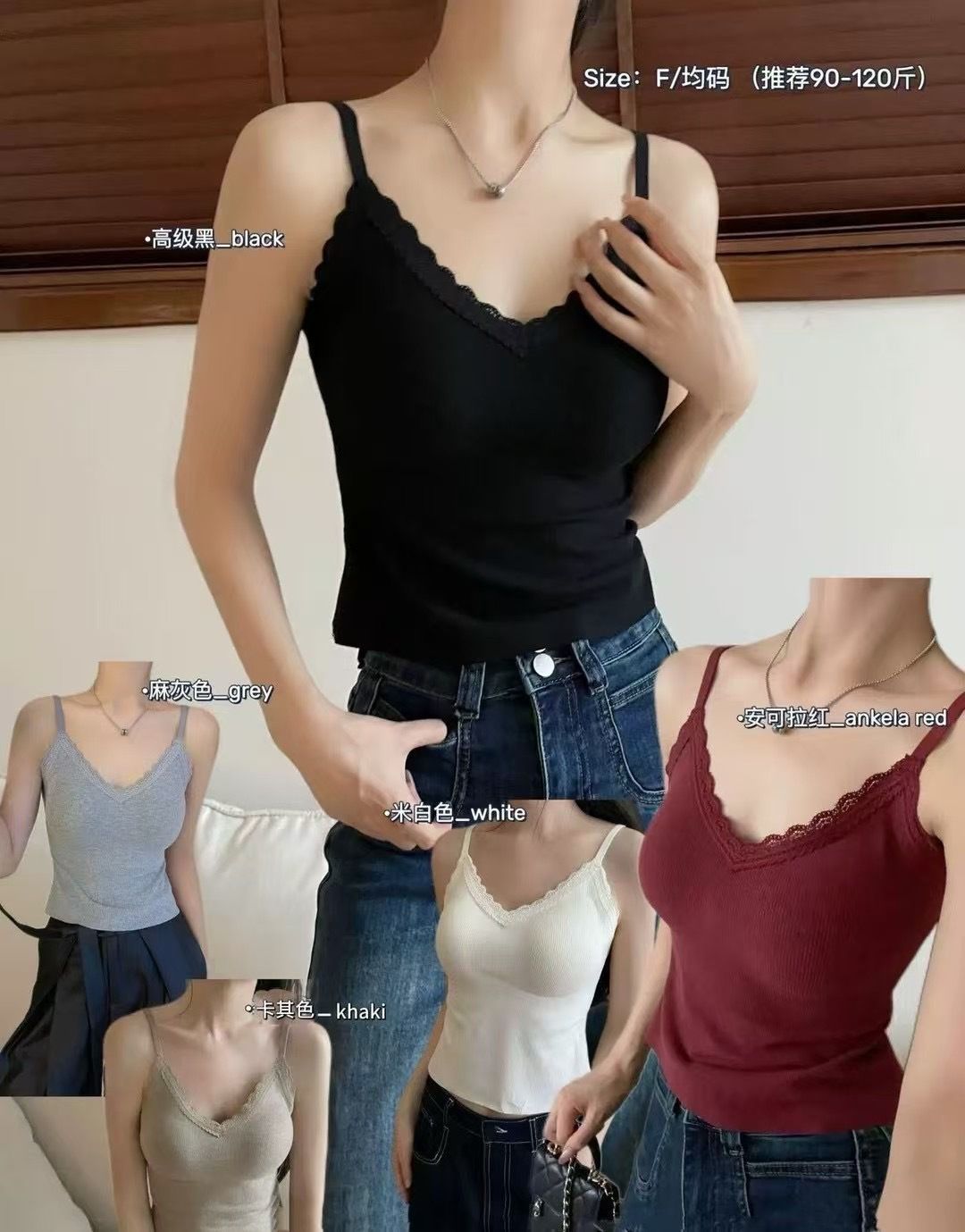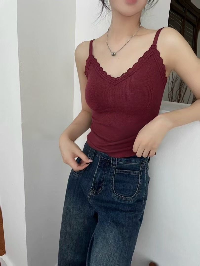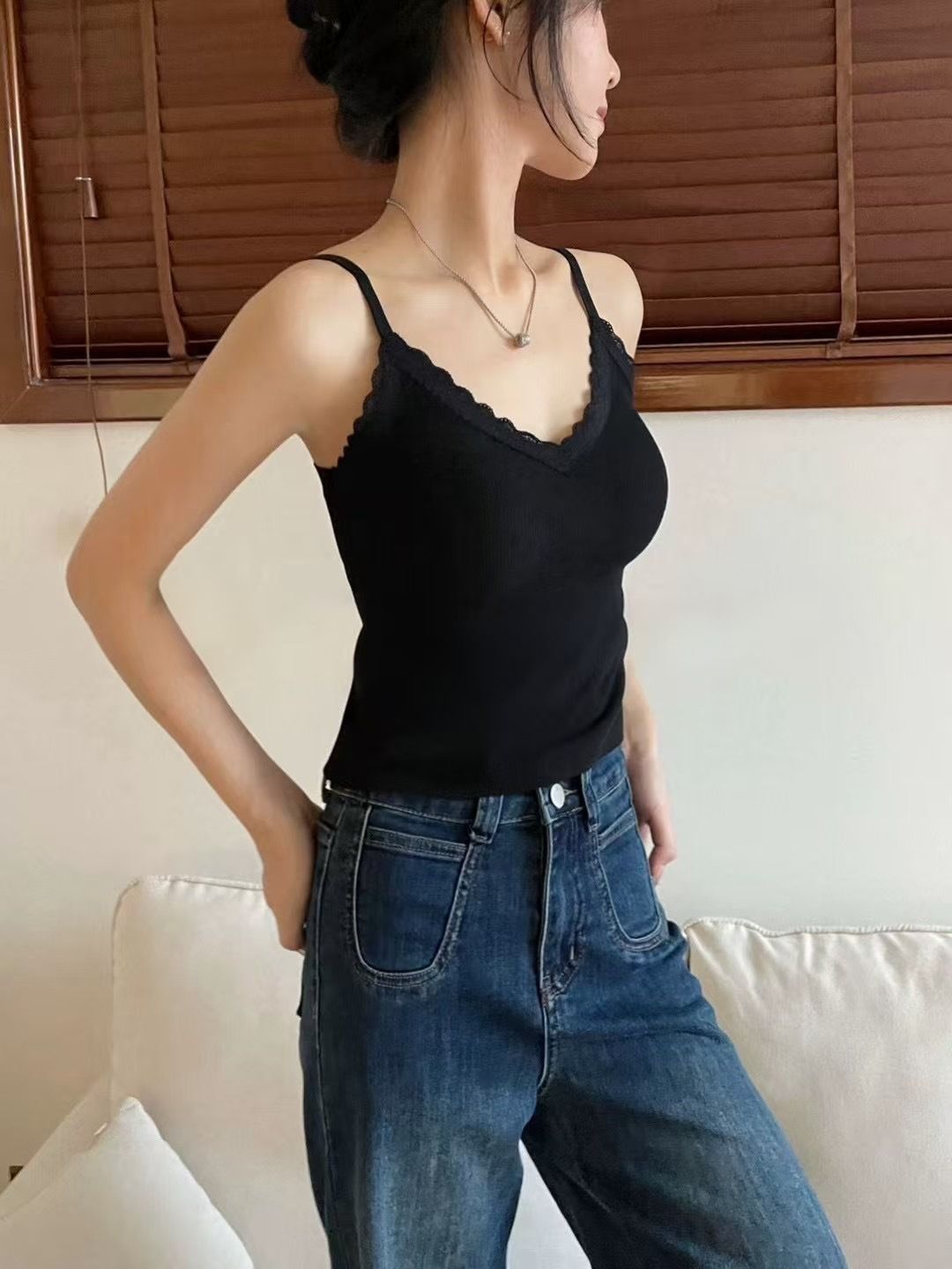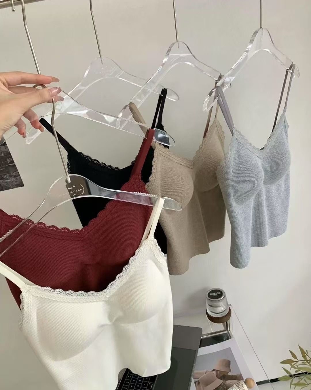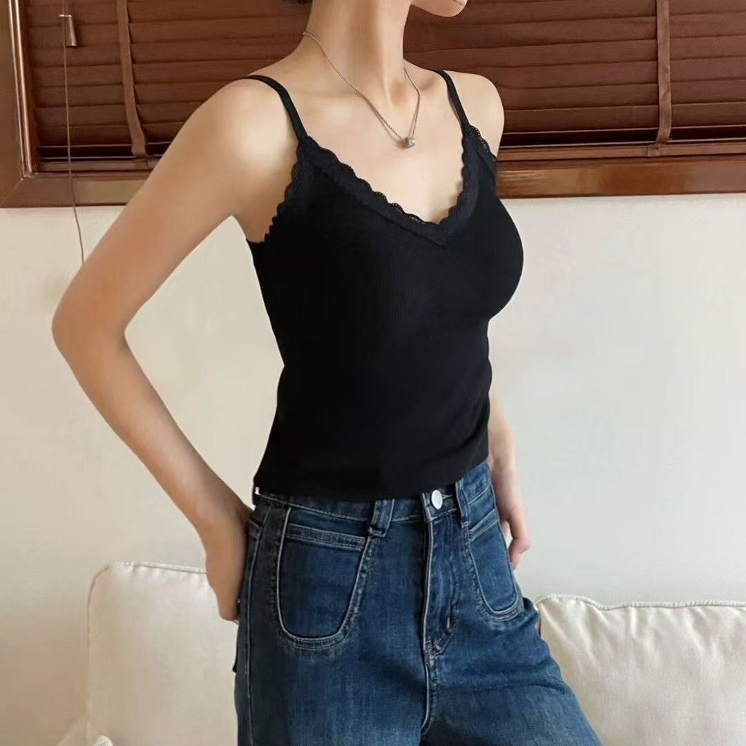 纯欲风性感蕾丝边吊带背心女带胸垫法式V领一体文胸内搭打底螺纹;;尺码:均码【80-130斤】;颜色分类:灰色About 四海一家商貿