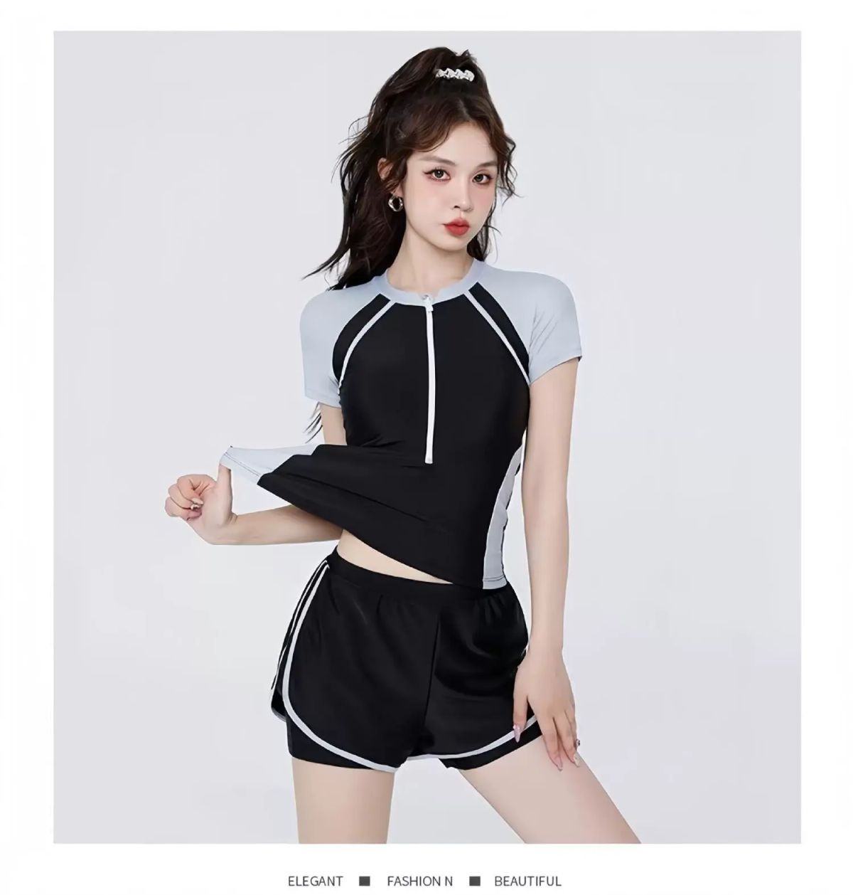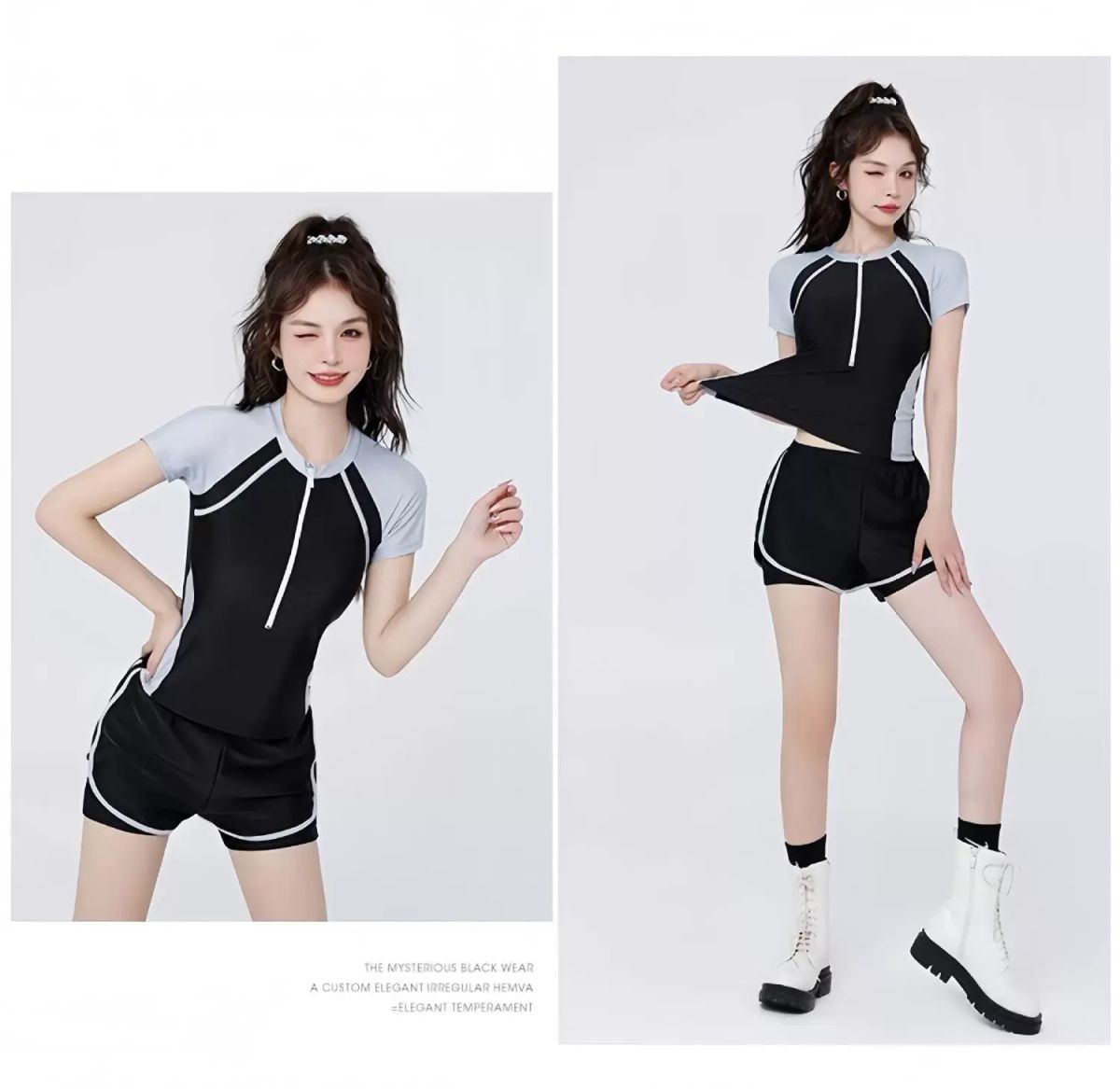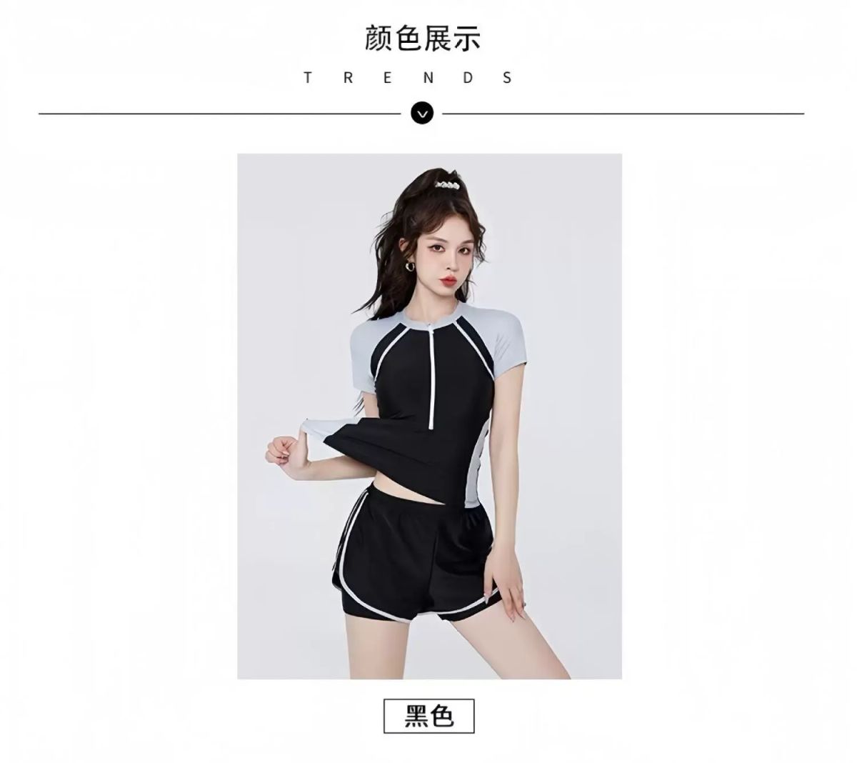 | Description | 泳衣女泡温泉保守两件式爆款女士成人泳装遮肉显瘦微胖新款;;尺码:M【75-90斤】;颜色分类:876黑灰 |