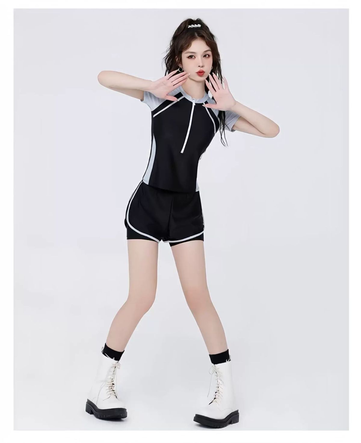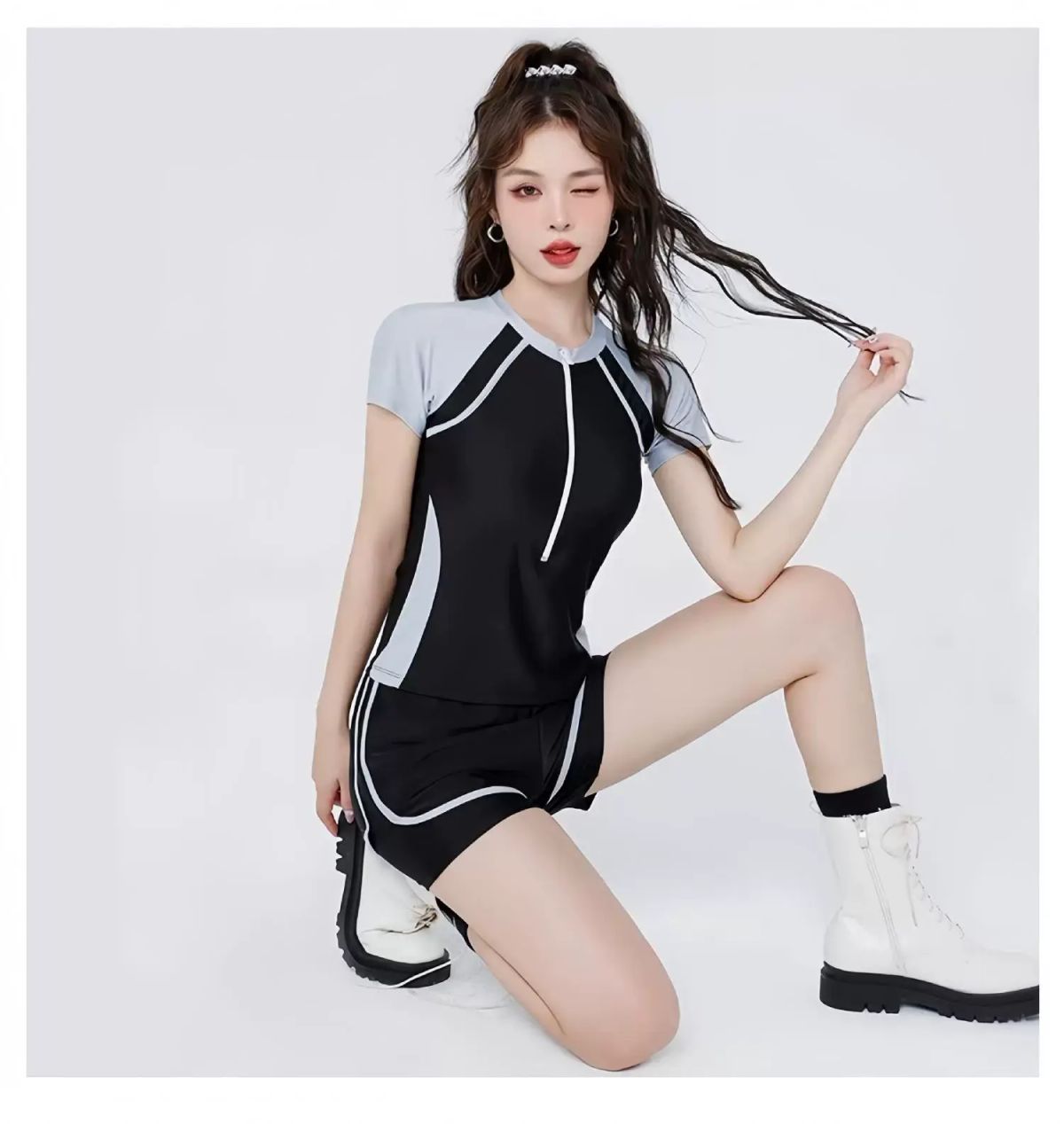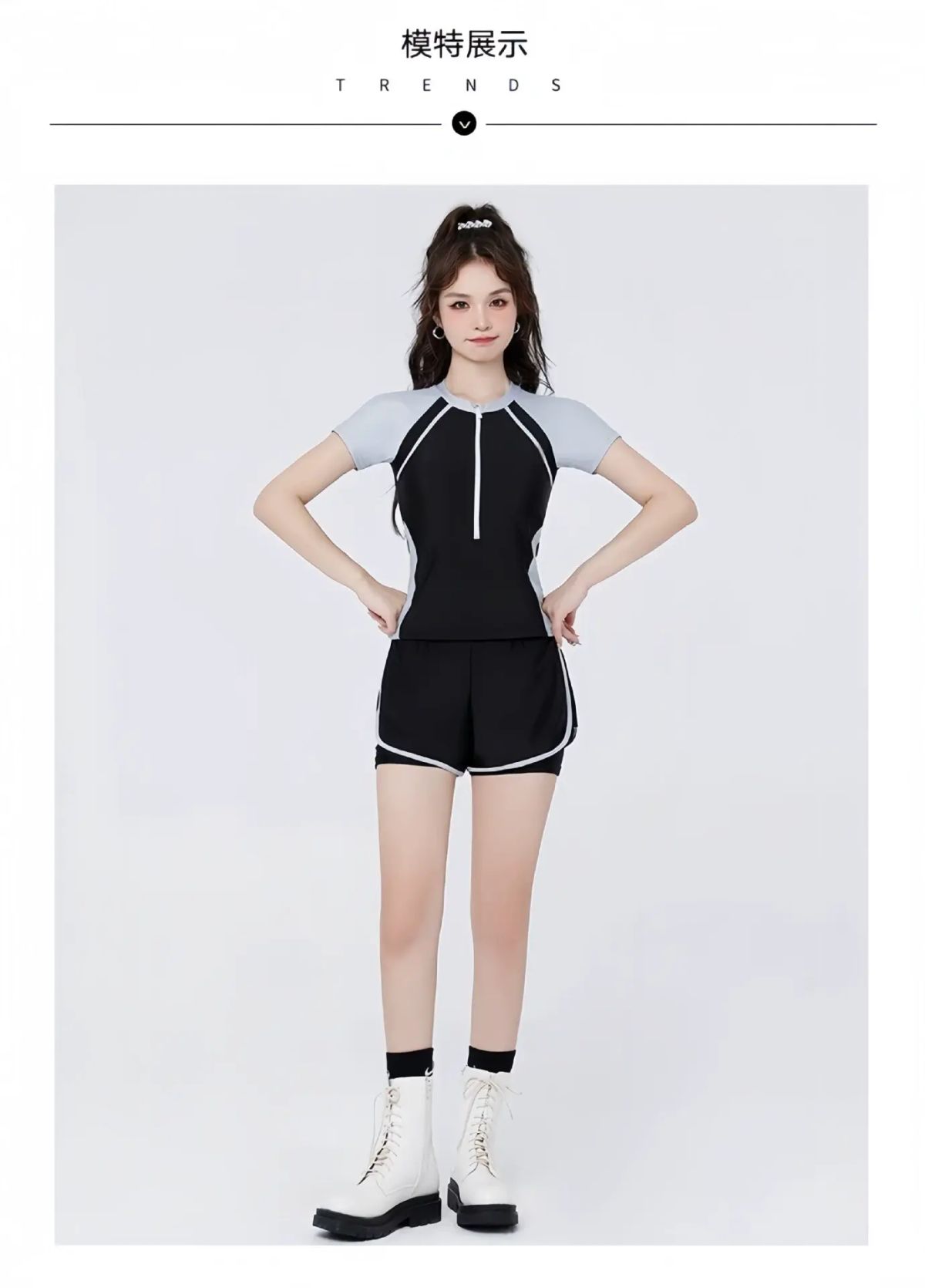 | Description | 泳衣女泡温泉保守两件式爆款女士成人泳装遮肉显瘦微胖新款;;尺码:M【75-90斤】;颜色分类:876黑灰 |