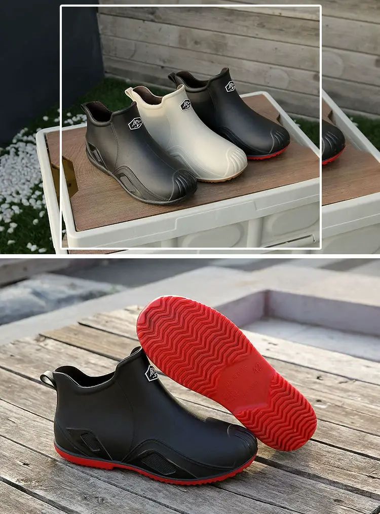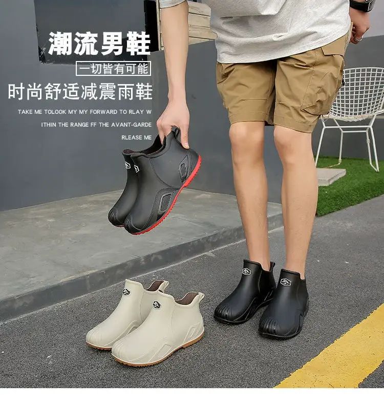 | Description | 新款時尚短筒水鞋 四季外穿防水防滑釣魚雨鞋男款;;尺碼:39;顏色分類:黑紅 單鞋 |