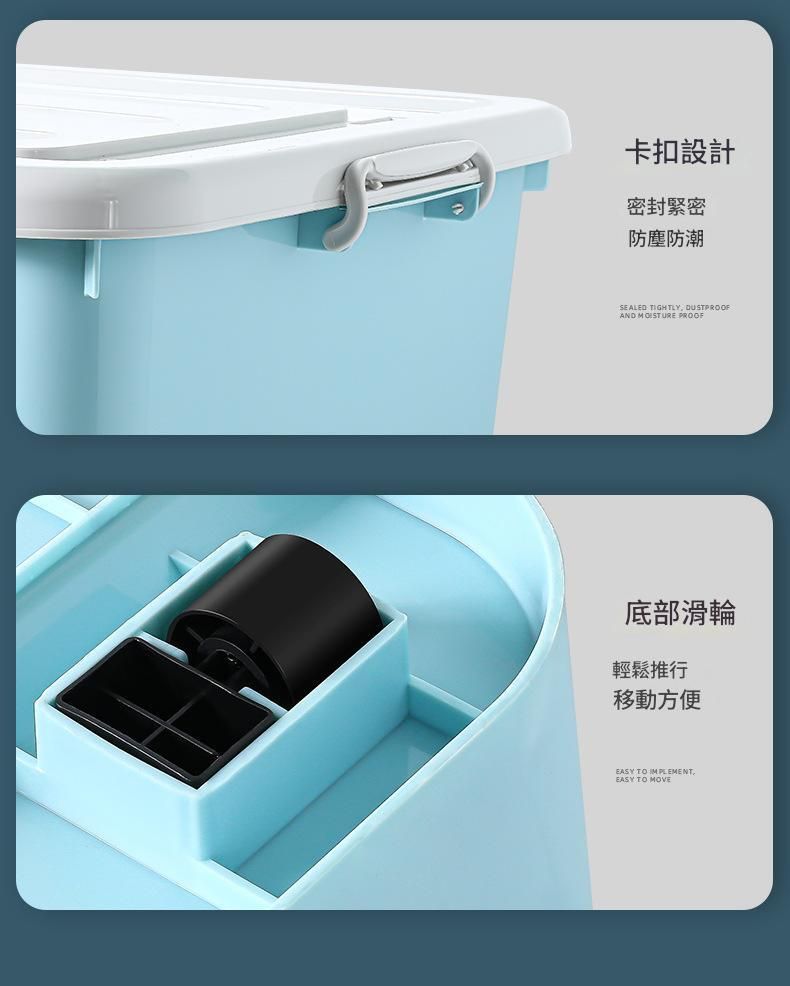 Younai Plastic Storage Box with Wheels, Carry-On Storage Box with Lid, Large Toy and Quilt Storage Box 80# Nordic Blue [53.5*38.5*32cm]