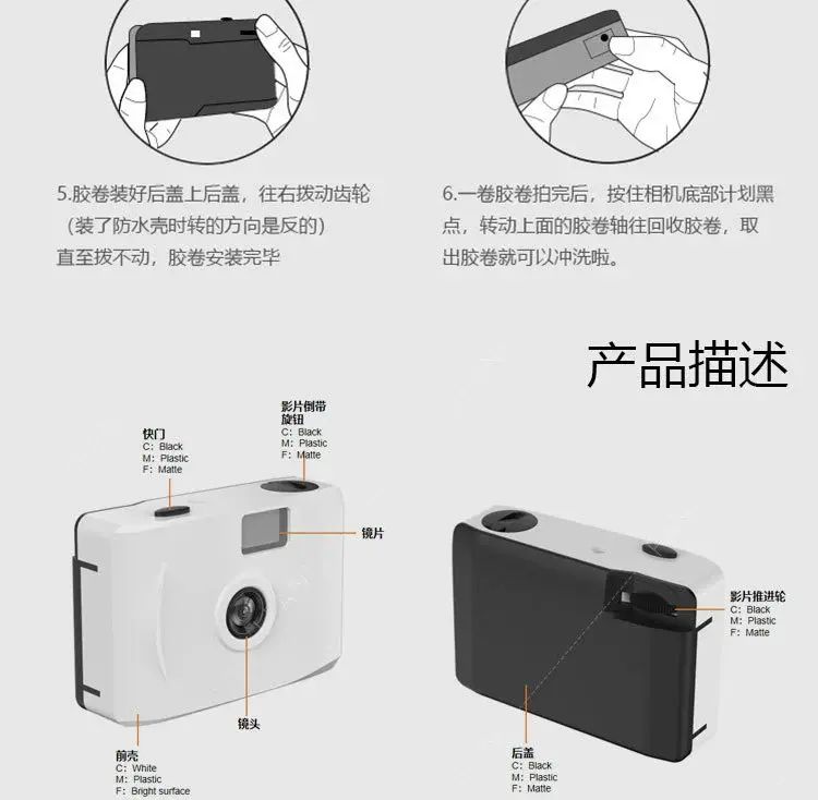 | Description | 复古傻瓜胶卷运动防水儿童小X子与玫瑰拍立得非一次性胶片相机;;颜色分类:小X子与玫瑰 |