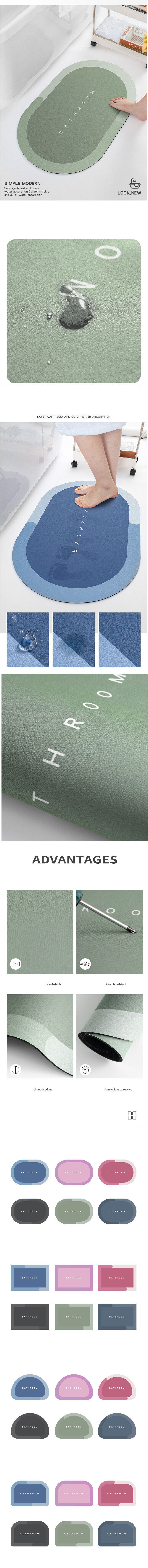 浴室矽藻地墊【莫蘭迪綠(矩形)】尺寸【60*90cm】