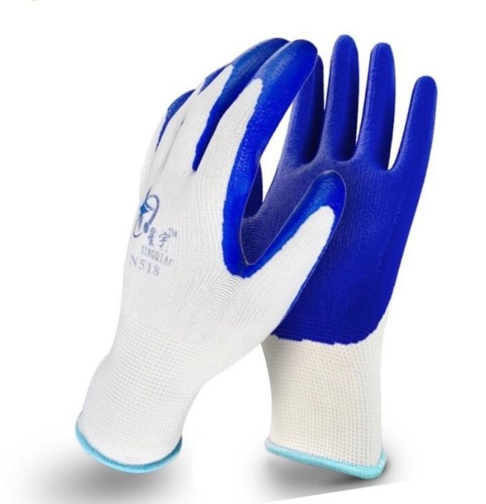 【1包裝/12雙】星宇N518勞保耐磨防水防滑工程手套/浸漬乳膠藍色手套【藍白色/均碼】ZMT_001_01580