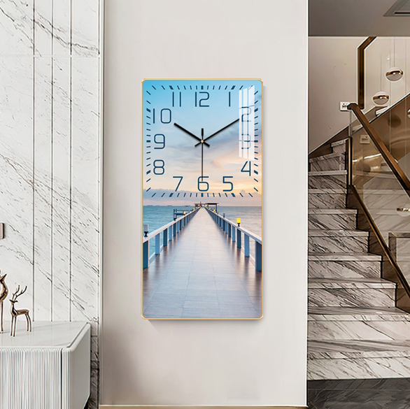 簡約裝飾壁掛鐘(B款金框)【40cm*60cm-晶瓷面】