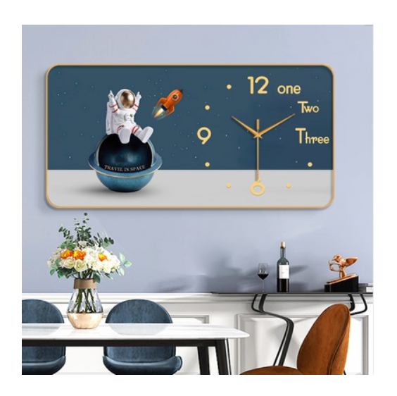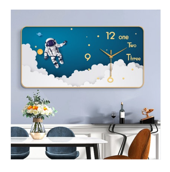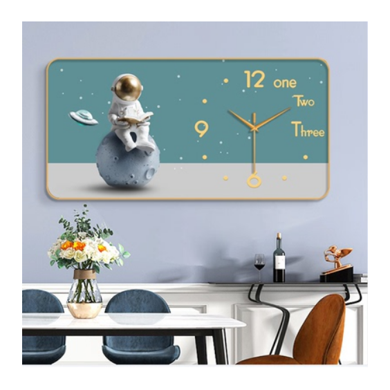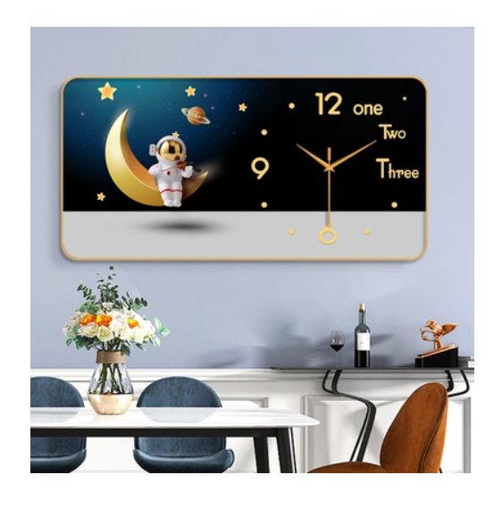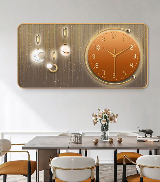 裝飾畫簡約PVC金框靜音掛鐘(家有祥鹿-金針)【50*100cm】