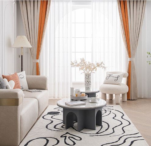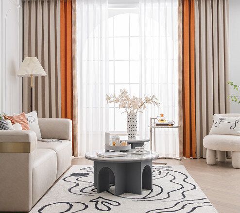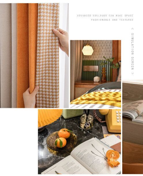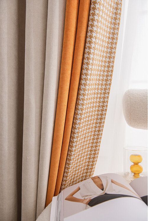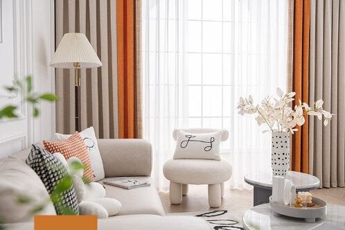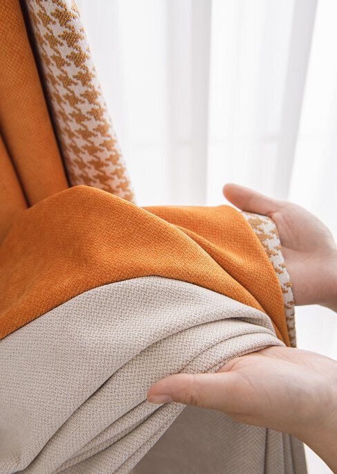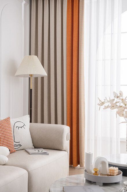【1片】客廳臥室遮光簾(杏仁米+甜橙橘,尺寸:寬2.3米*高2.7米【掛鉤款】)