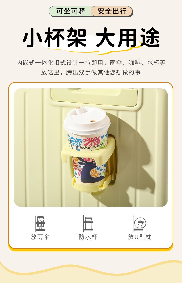 Built-in integrated buckle design, pull and use, put umbrellas, coffee, water cups, etc. here, free your hands to do other things you want to do Thoughtful hook design, handbags and backpacks can be placed at any time, freeing your hands 360° silent universal wheel Thickened wheel skin, wear-resistant and silent without disturbing |