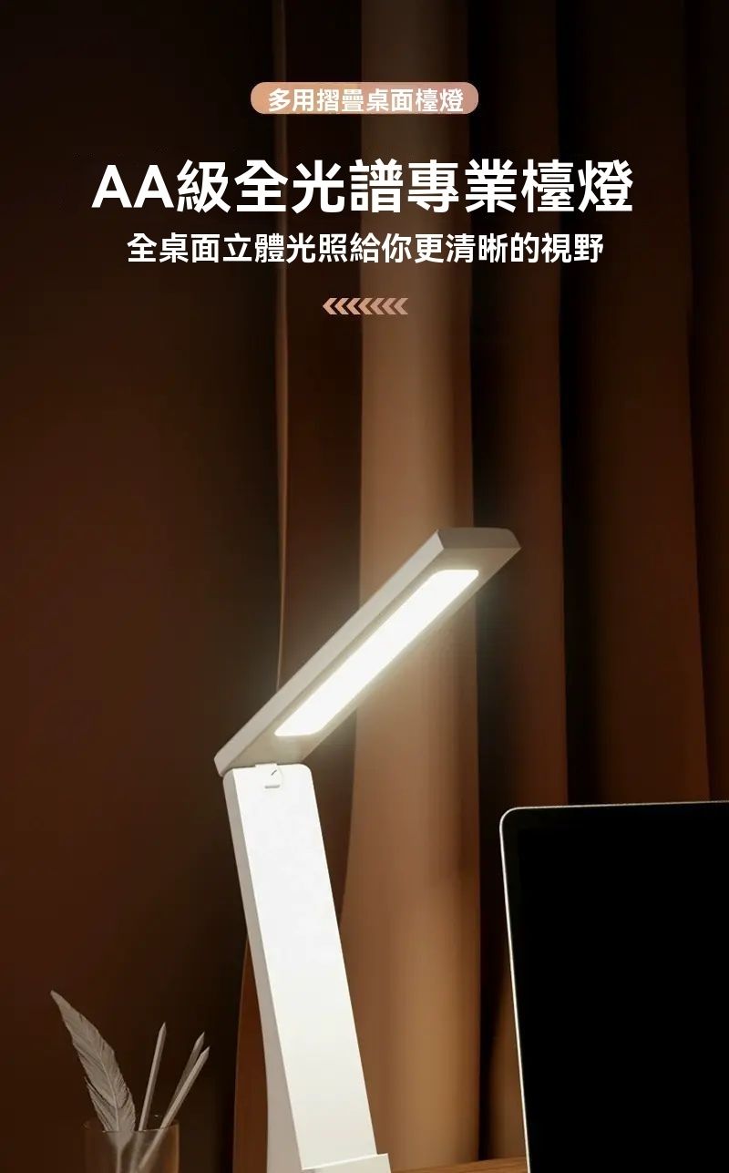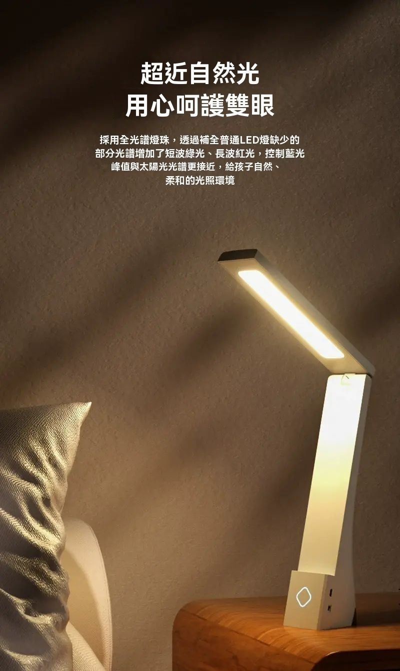 Material: Plastic Size: 27.5*8*5.5cm Weight: 320g This LED eye protection desk lamp is designed for children to read and write. It is super convenient to use for charging and plugging. You can switch between charging and plugging at will. Foldable design, easy to store on the desk. The light is soft and flicker-free, which can effectively relieve eye fatigue. Multi-level dimming meets the needs of different scenarios and helps efficient learning.