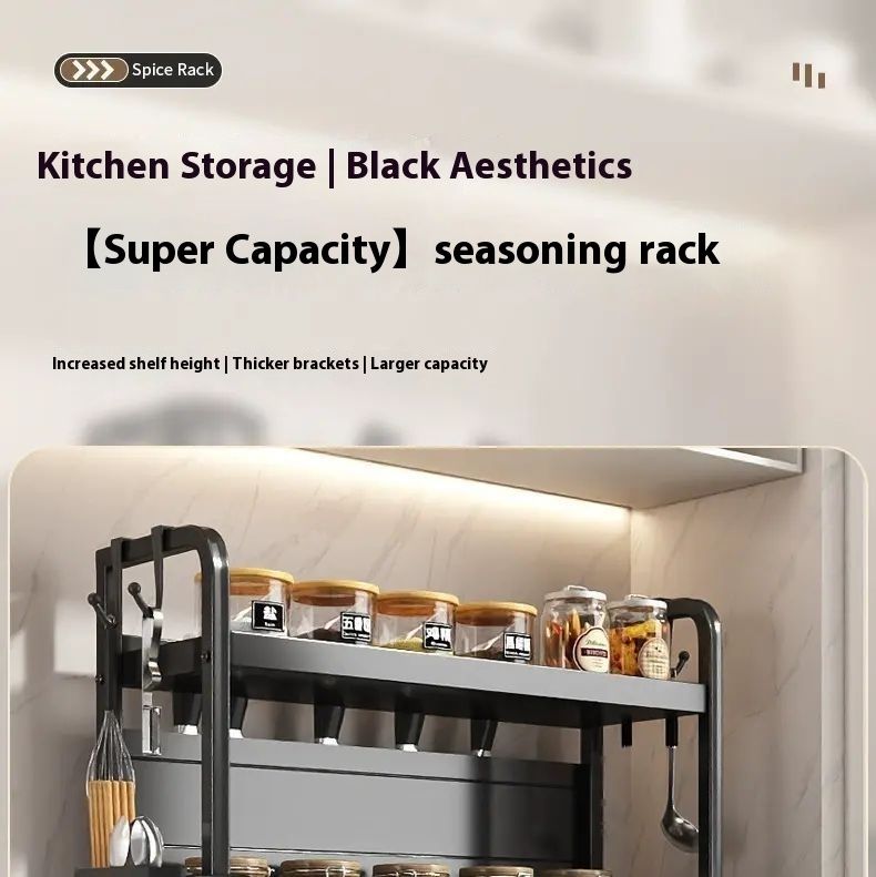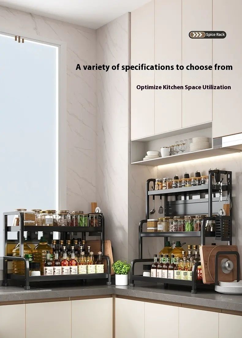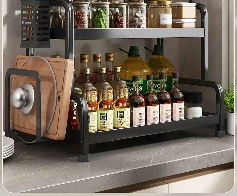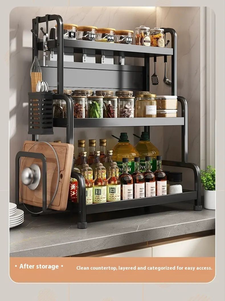 This incredibly practical kitchen rack features a multi-layered design with cleverly divided sections, allowing for organized storage of spice bottles, chopsticks, knives, cutting boards, and more. It's sturdy and durable, with excellent load-bearing capacity, and made of safe, easy-to-clean materials. With it, your kitchen becomes tidy and organized, letting you enjoy cooking with ease. It's a must-have for kitchen enhancements.