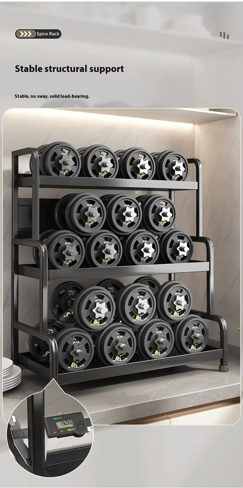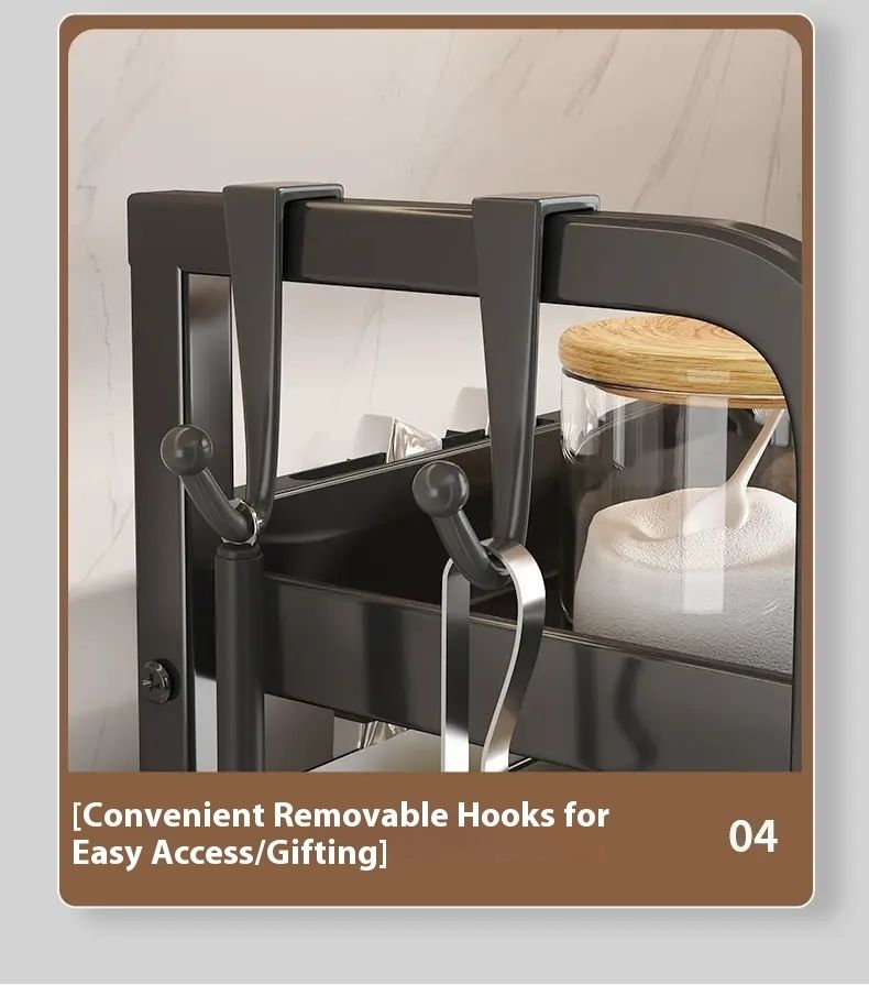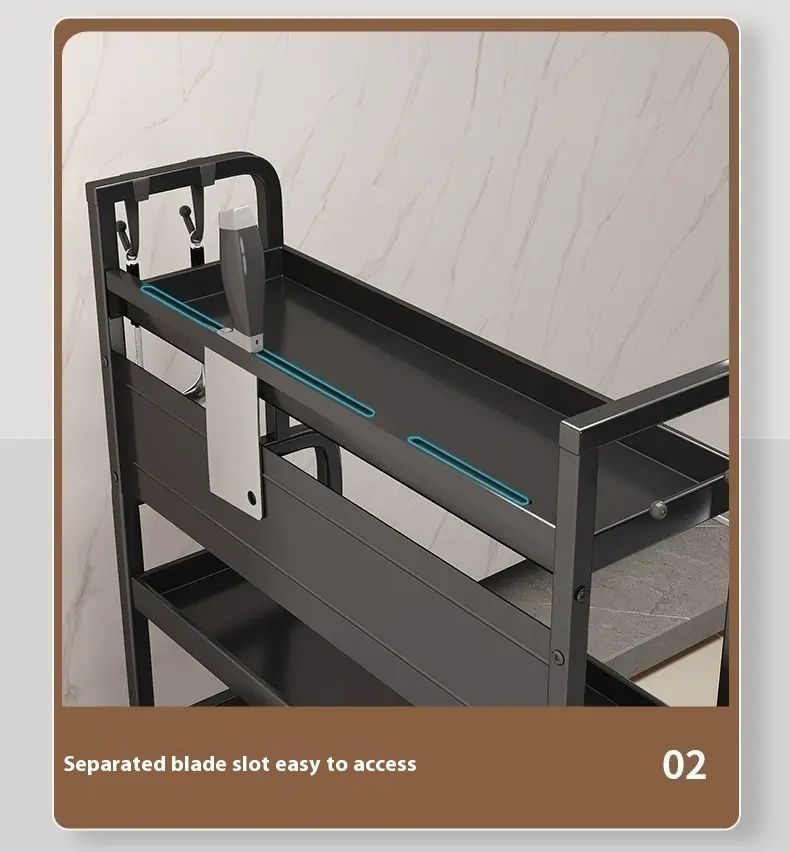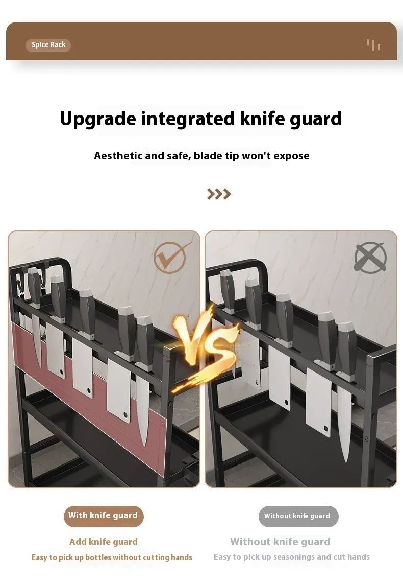 This incredibly practical kitchen rack features a multi-layered design with cleverly divided sections, allowing for organized storage of spice bottles, chopsticks, knives, cutting boards, and more. It's sturdy and durable, with excellent load-bearing capacity, and made of safe, easy-to-clean materials. With it, your kitchen becomes tidy and organized, letting you enjoy cooking with ease. It's a must-have for kitchen enhancements.