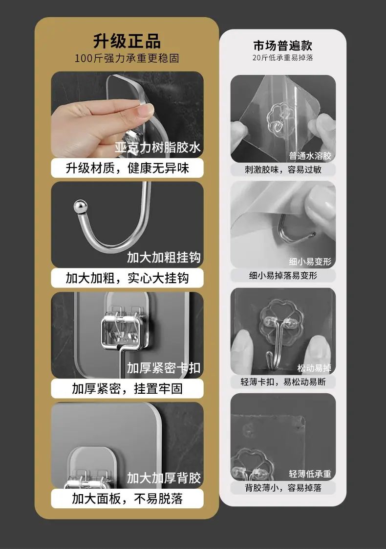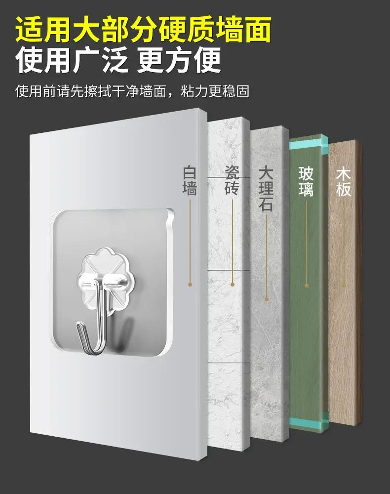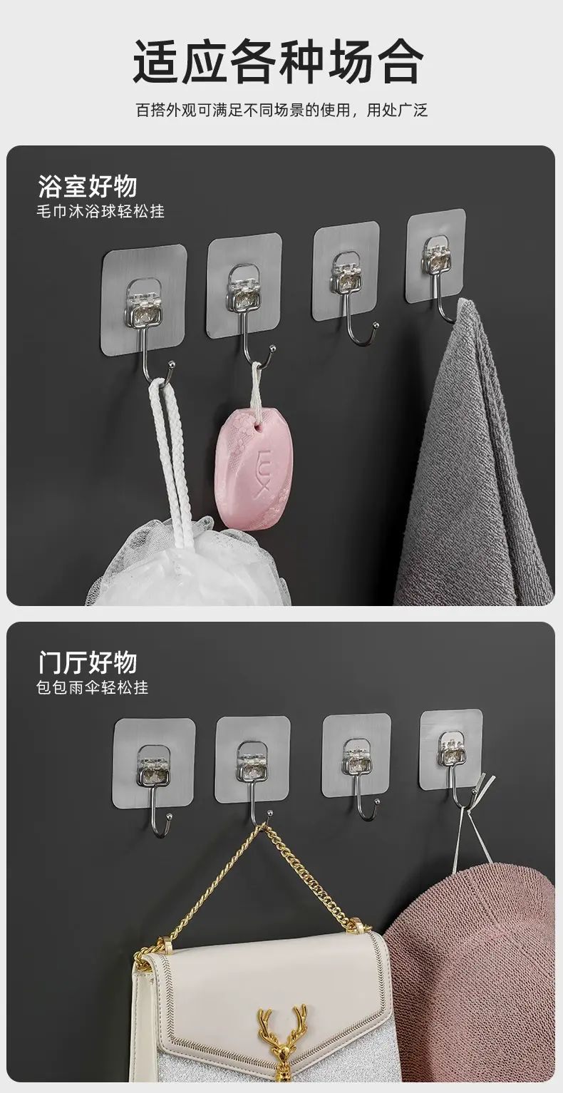 | Description | This transparent, traceless hook is the perfect choice for wall storage! Its punch-free design and strong adhesive make it easy to attach to the wall without damaging it. Its transparent exterior is invisible and beautiful, blending seamlessly with the wall. Its strong load-bearing capacity allows it to securely hold a variety of items. Suitable for kitchens, bathrooms, and bedrooms, it adheres securely and resists falling off, making home storage simple and practical! |