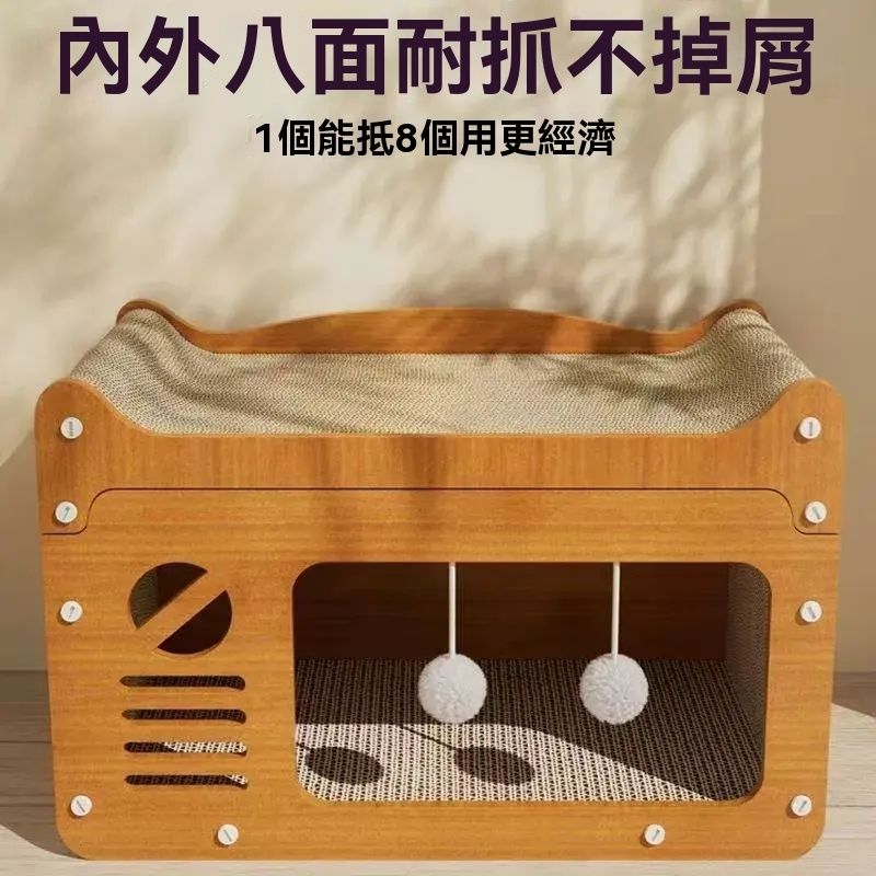 Material: corrugated paper Specifications: 30*56*30cm Weight: 2000g This enclosed cat bed adopts an integrated cat scratching board design, suitable for all seasons, and can keep warm and comfortable in winter. The built-in wear-resistant cat claw board satisfies the cat's natural scratching instinct and can be used as a cat bed or sofa toy. The spacious space is suitable for kittens and adult cats. The top entrance design protects privacy and is easy to disassemble and clean. |