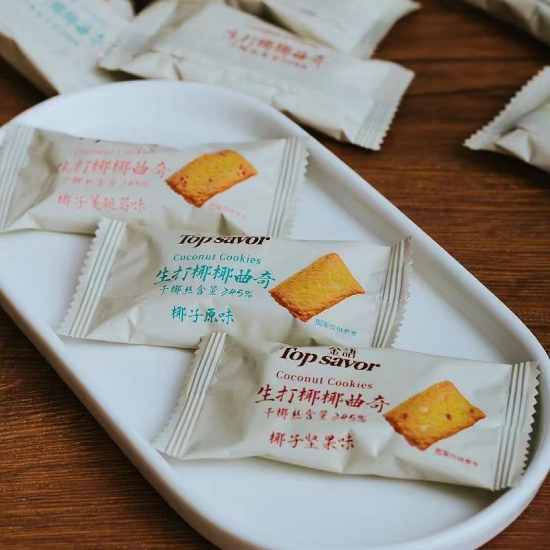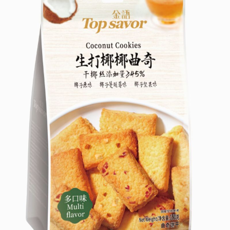 [Product Name] Freshly Baked Coconut Cookies [Brand] Jinyu [Net Weight] 150g/bag [Shelf Life] 300 days [Storage] Store in a cool, dry place, away from direct sunlight. Note: Images are for reference only. Actual product will be subject to change. |