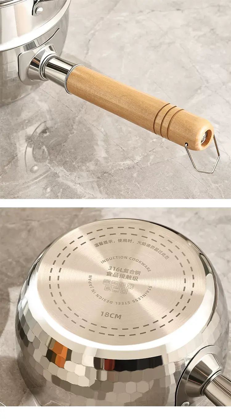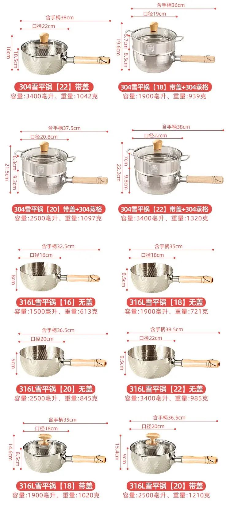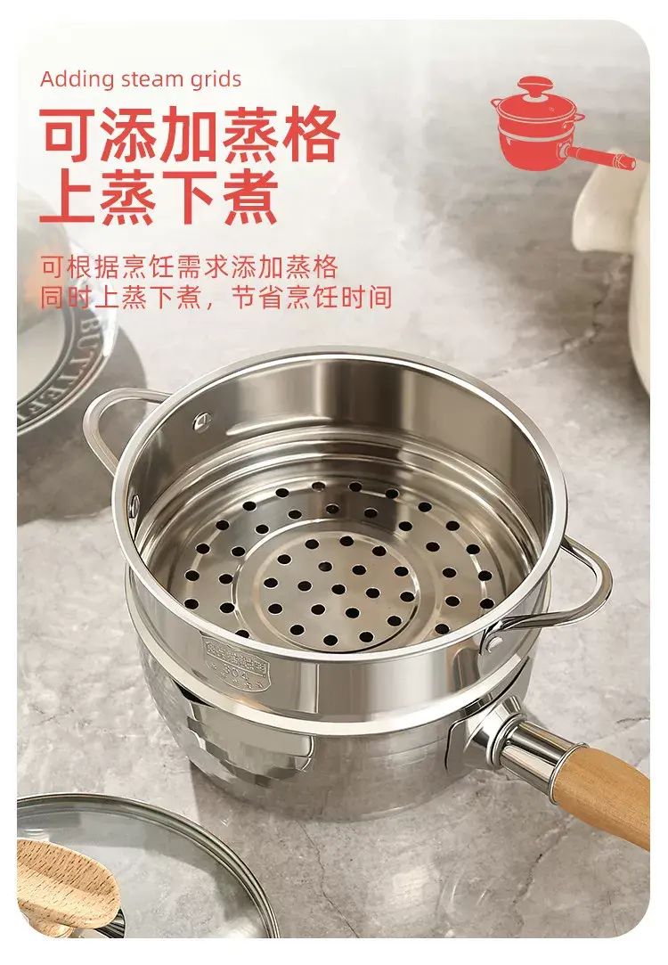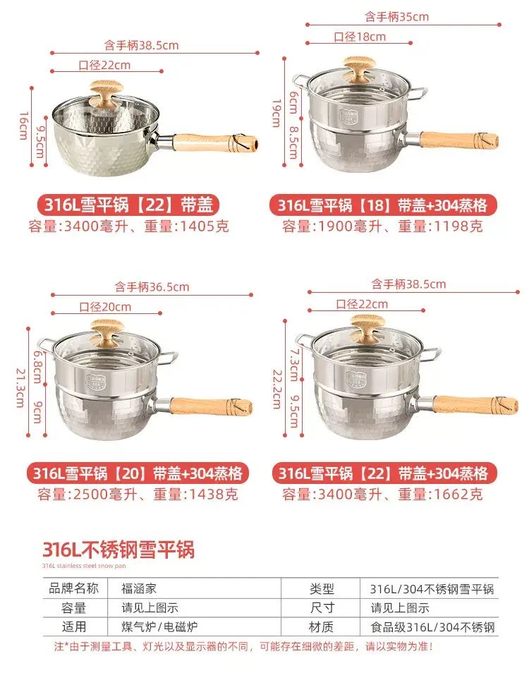 | Description | 316L不锈钢雪平锅一人食电磁炉小锅家用煮面锅热牛奶不粘锅辅食锅;316材质【16cm】带盖+蒸格(超级厚款) |