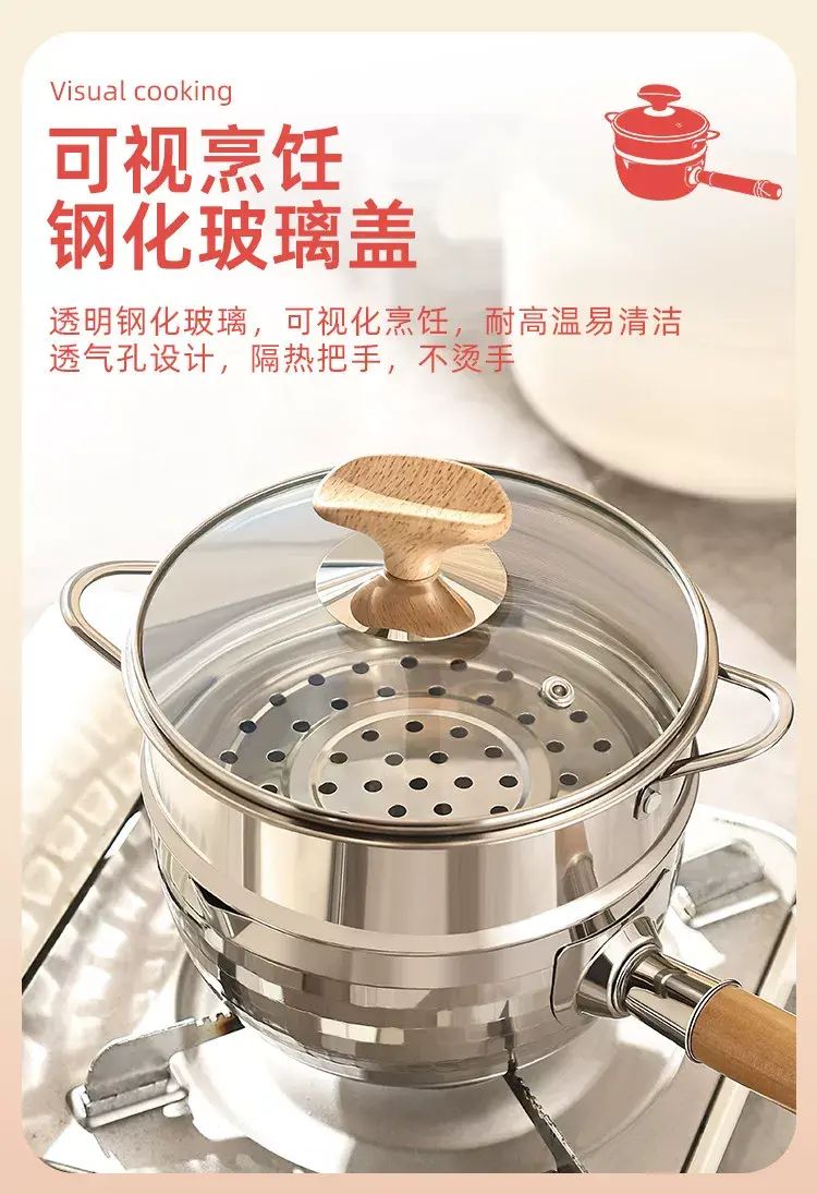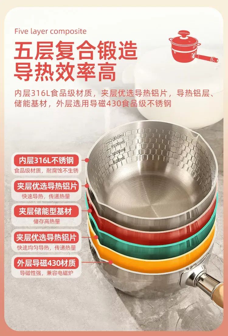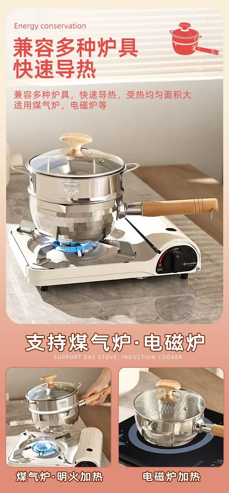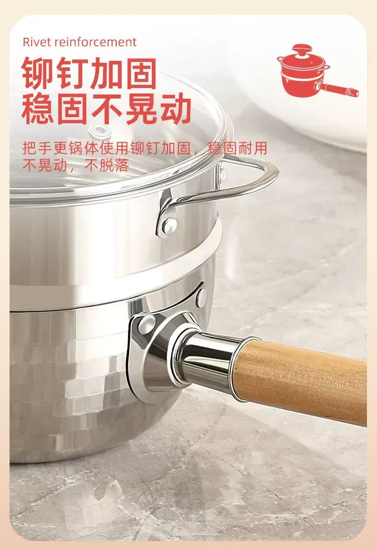 | Description | 316L不锈钢雪平锅一人食电磁炉小锅家用煮面锅热牛奶不粘锅辅食锅;316材质【16cm】带盖+蒸格(超级厚款) |