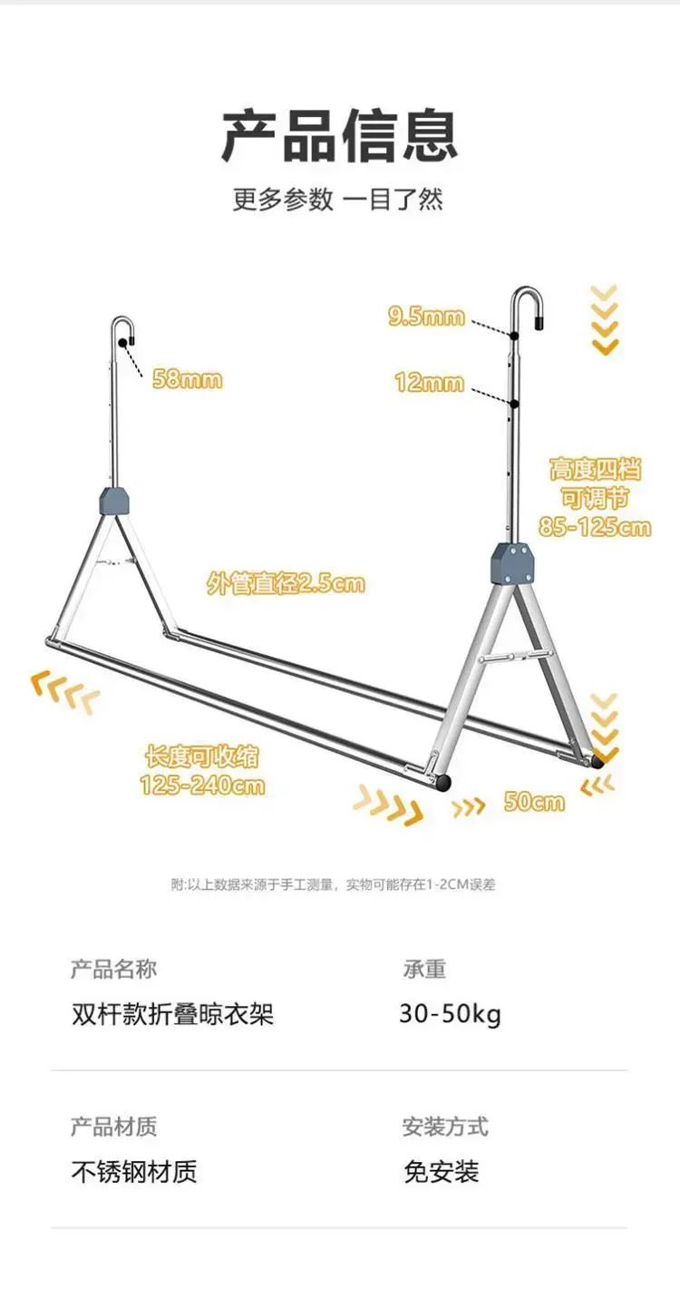 | Description | 不锈钢可伸缩晾衣杆室内室外阳台家用单杆免打孔被子悬挂式晾衣架;;颜色分类:【单杠】4档调节可伸缩【1.3-2.35米】 |