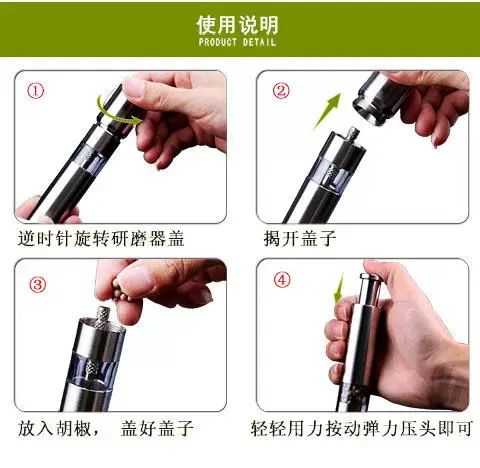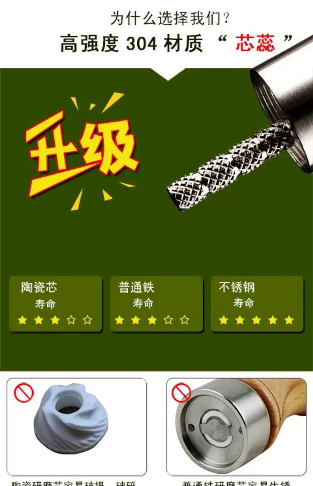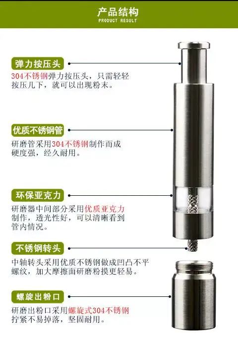 | Description | 不锈钢胡椒研磨器家用胡椒磨粉器手动现磨胡椒磨花椒粉末碾磨碎器;;颜色分类:不锈钢胡椒磨 |