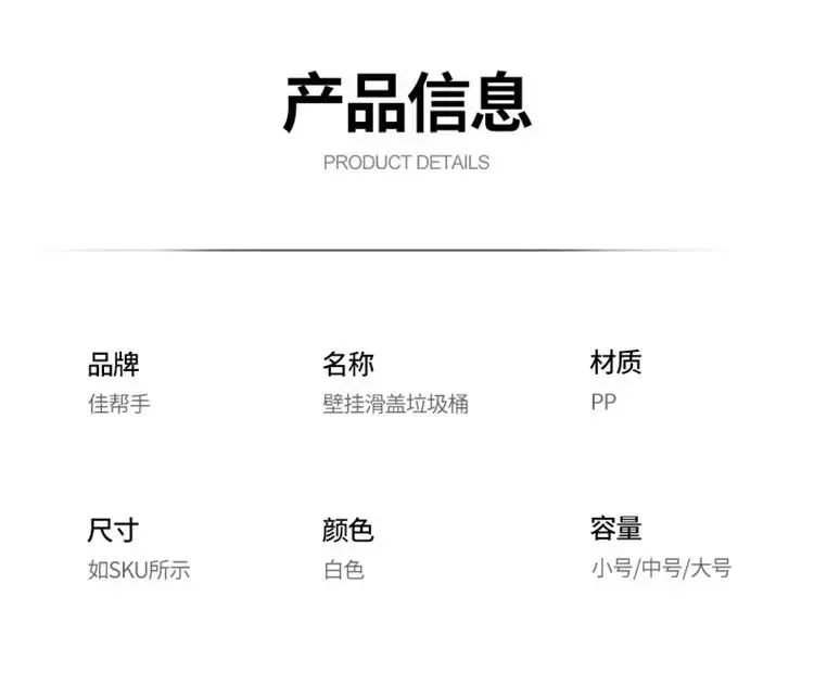 | Description | 佳帮手厨房壁挂垃圾桶家用大容量2025过年厨余带盖悬挂客厅垃圾桶;;颜色分类:【小号滑盖】减少弯腰投丢 |