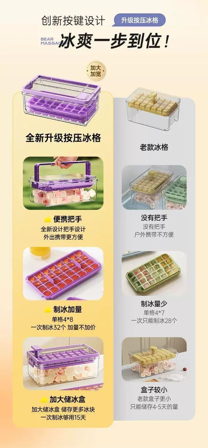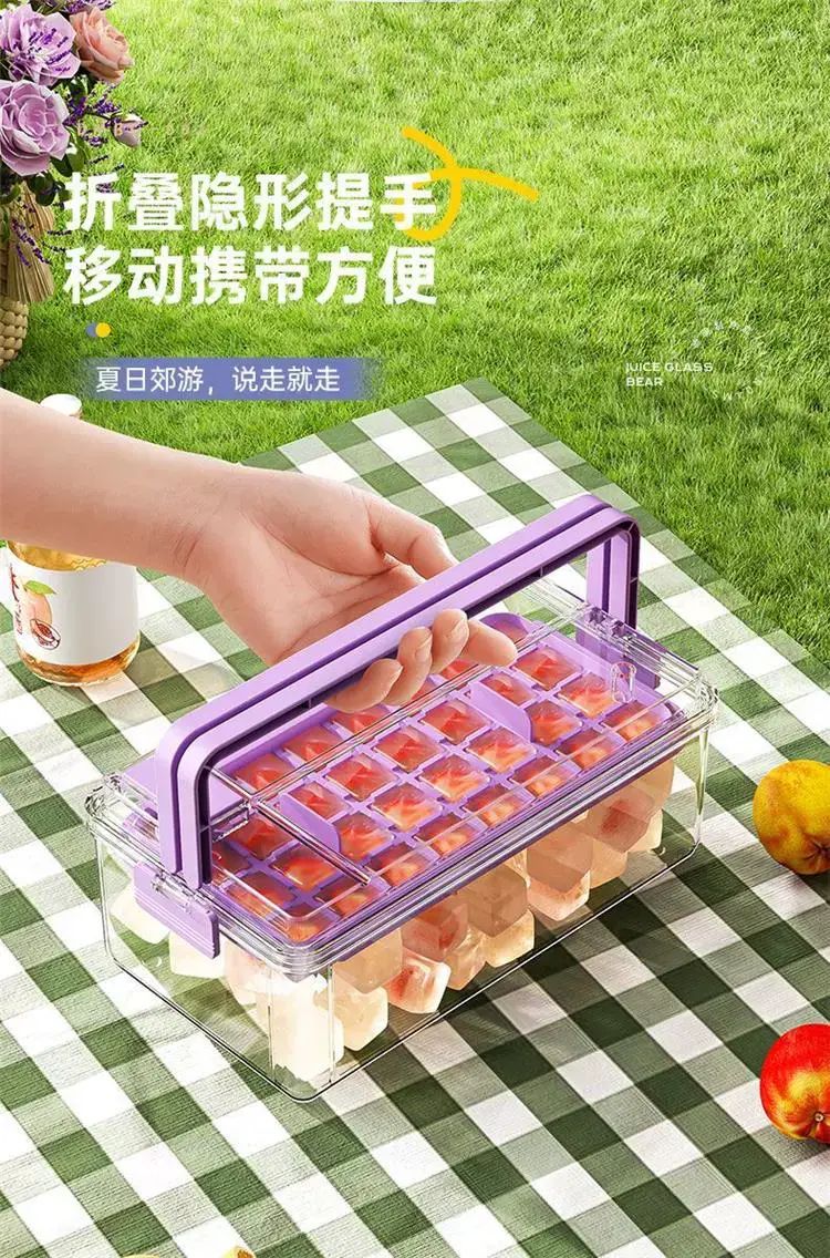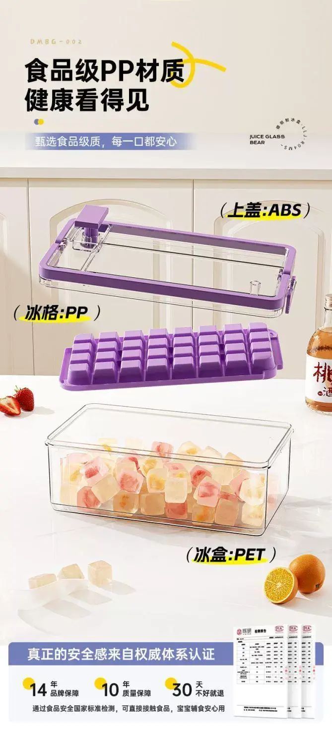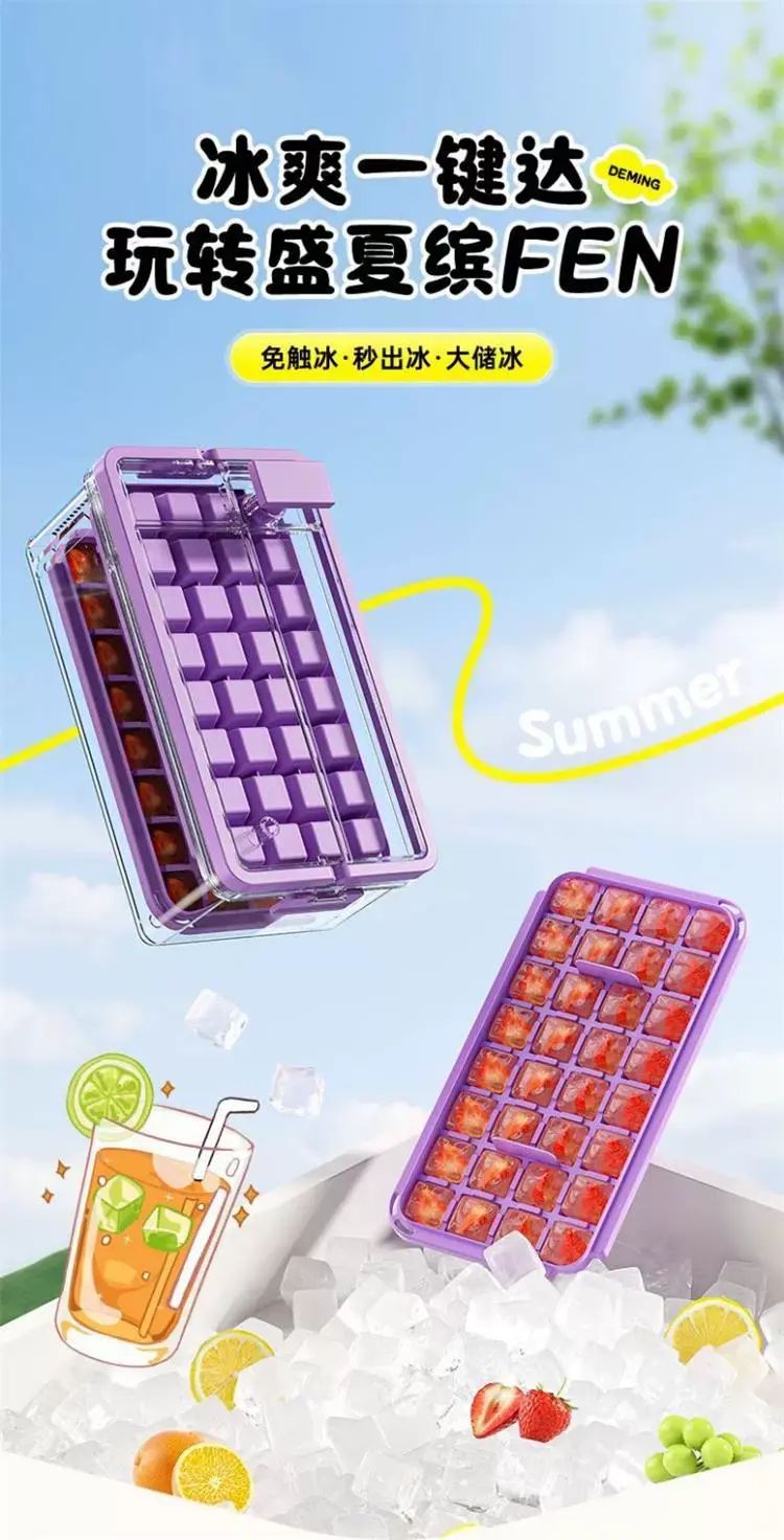 | Description | 冰块模具食品级按压冰格冻冰块盒制冰盒家用自制冰块储存神器;;颜色分类:黛紫-按压冰格(单层66格) |