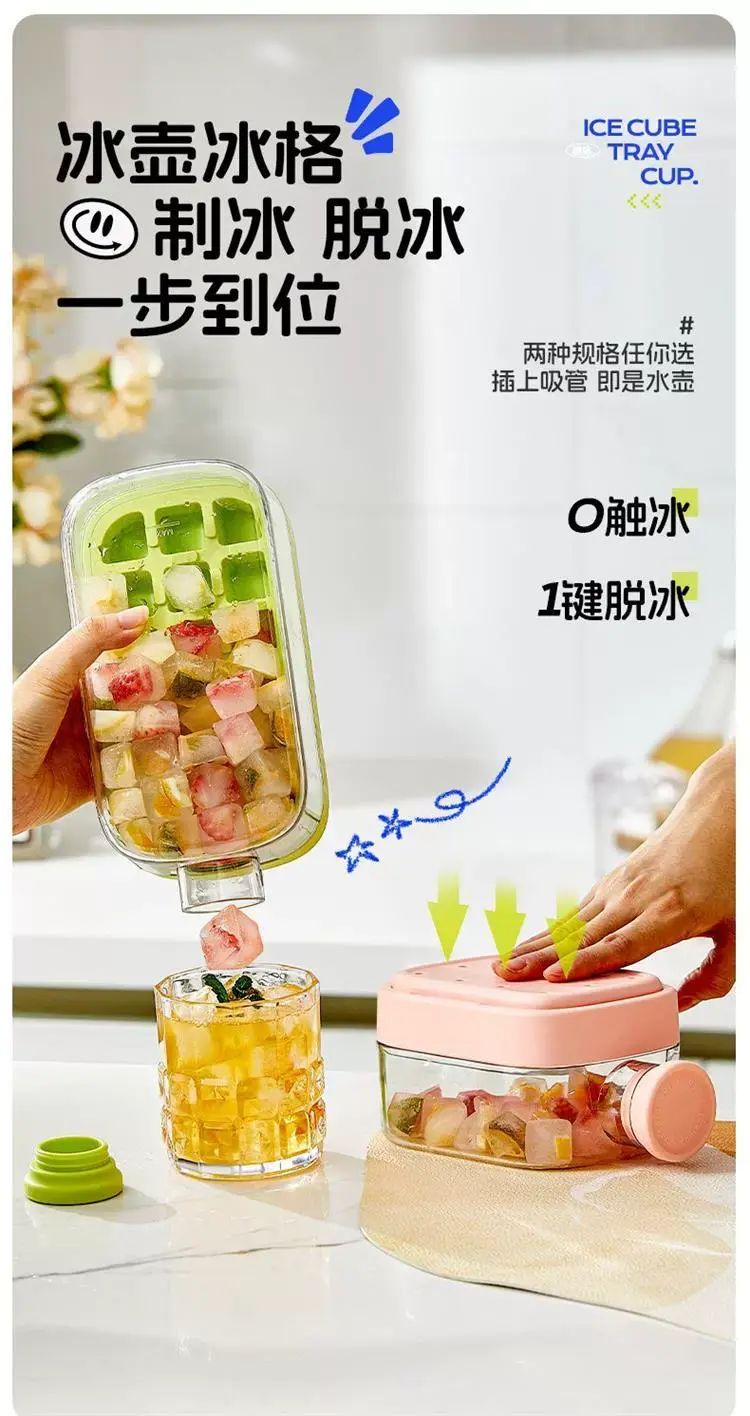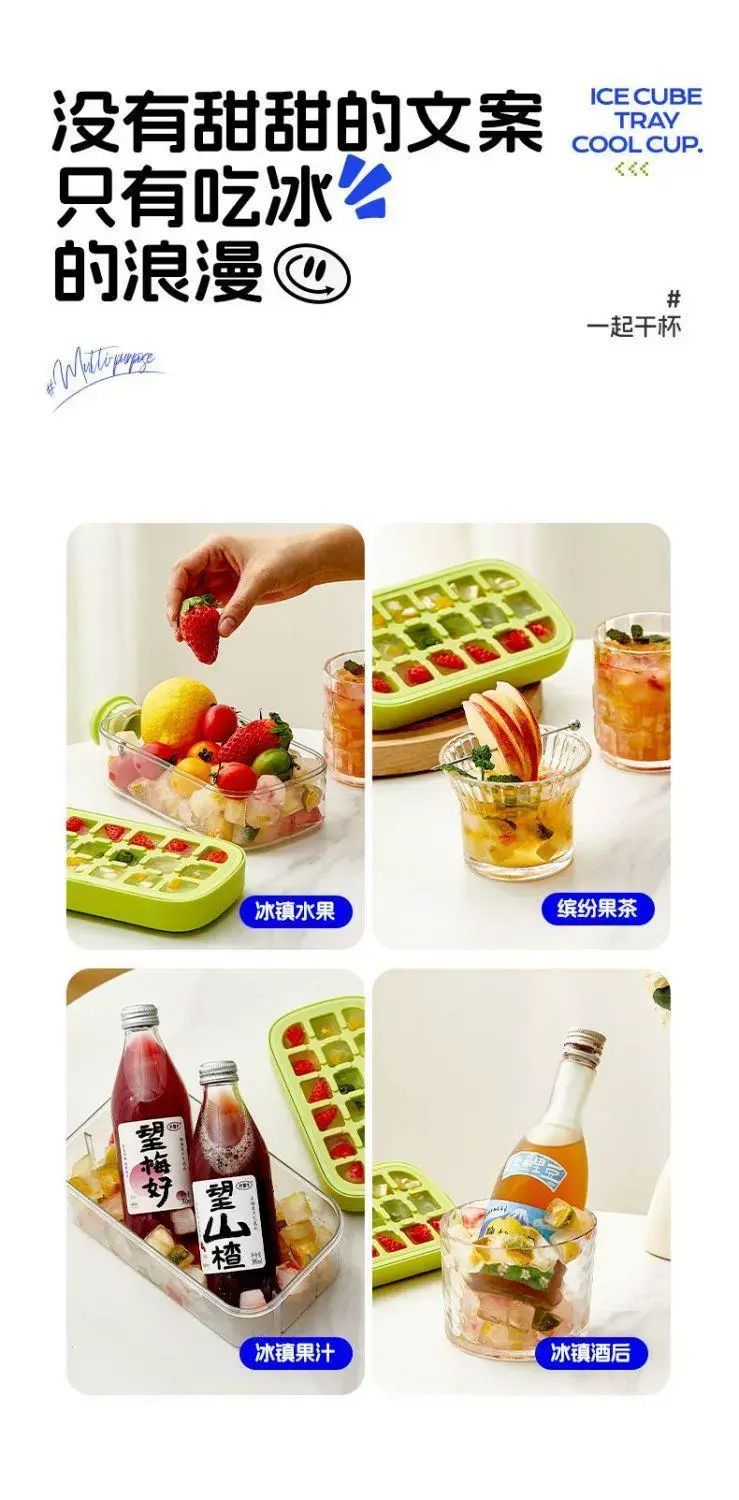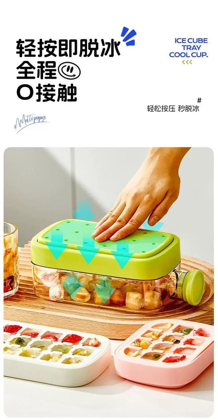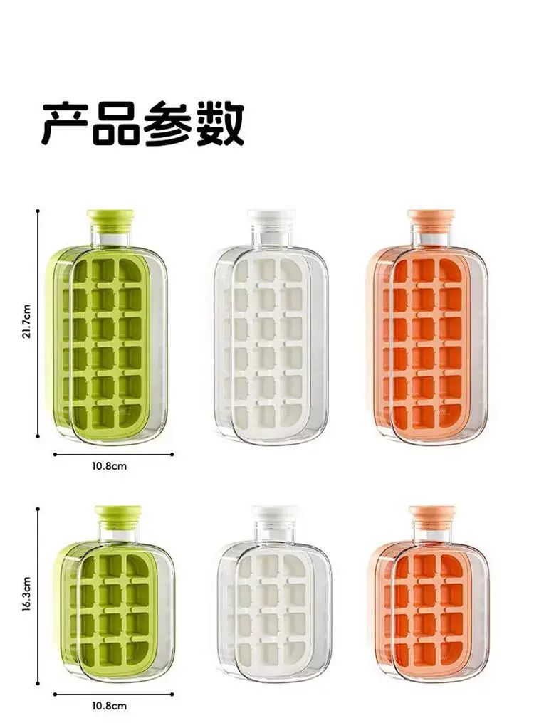 | Description | 冻冰块模具按压式冰格制冰盒家用冰箱制冰块神器食品级带盖储冰盒;;尺码:标准;颜色分类:储冰18粒/0触冰1键脱冰/高216mm |