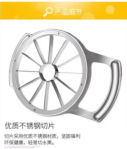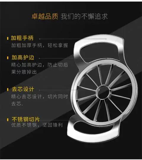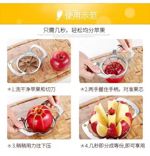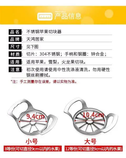 | Description | 创意家用不锈钢苹果切水果神器去核加厚切片分割器水果分块器手动;;颜色分类:苹果切-小号 |