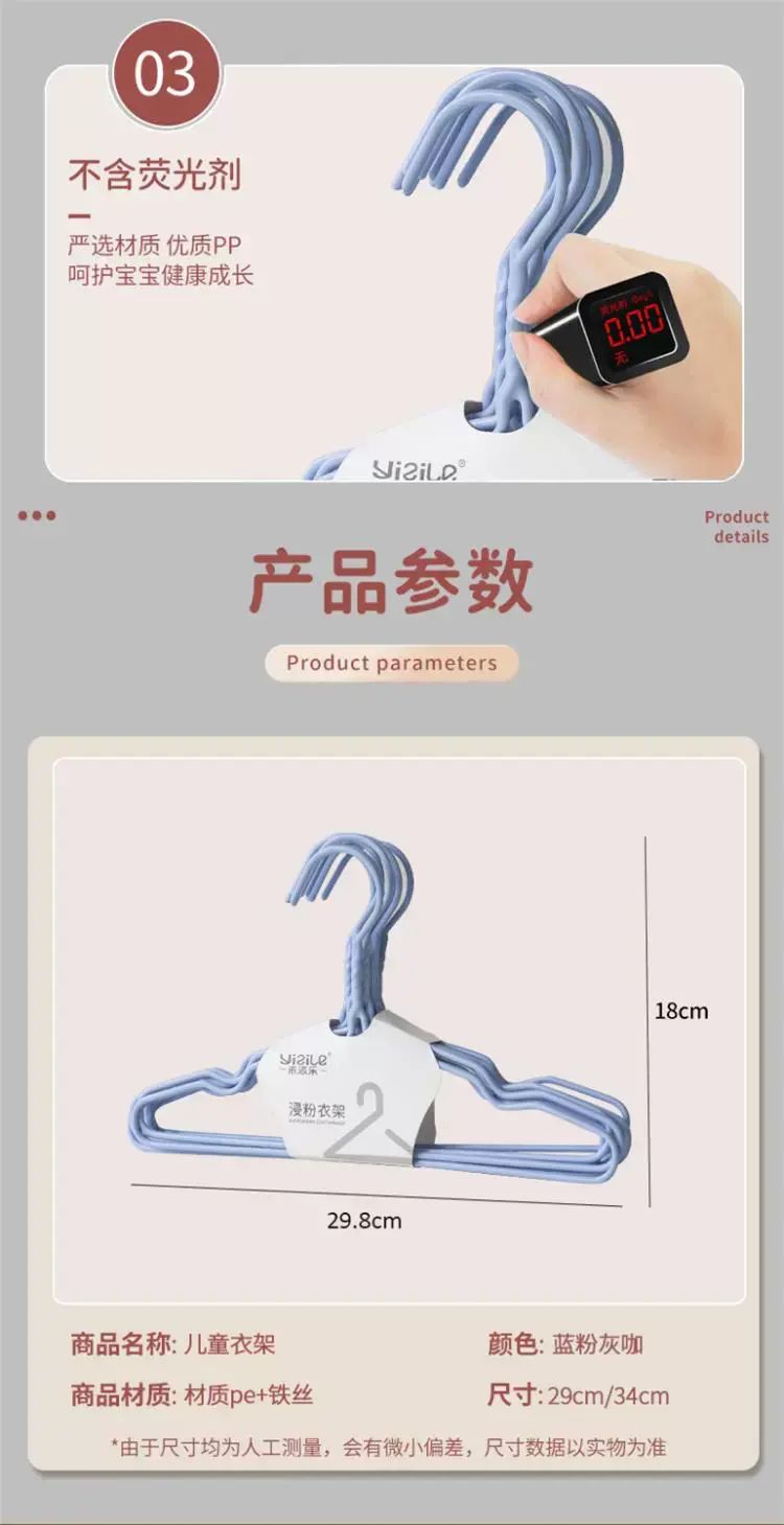 | Description | 加粗儿童衣架婴儿宝宝新生儿小孩家用晒衣服小朋友防滑晾衣服架子;;颜色分类:天蓝色【29cm纸卡装】_10支装 |