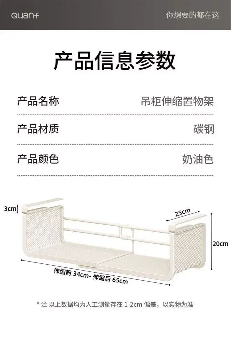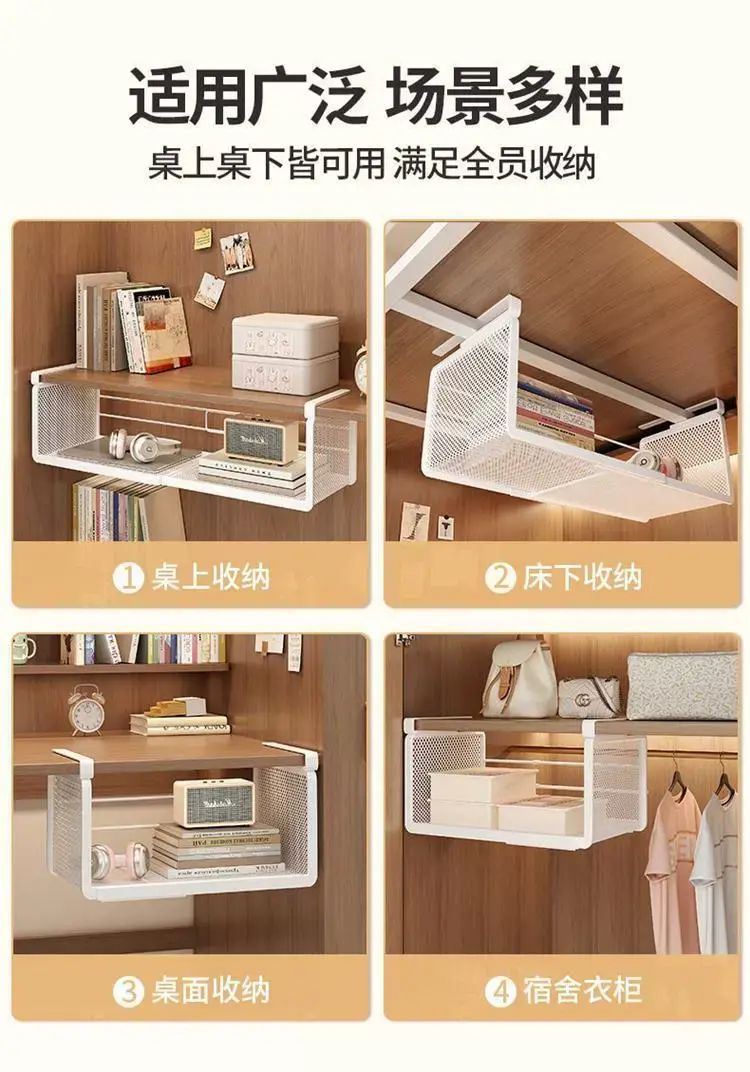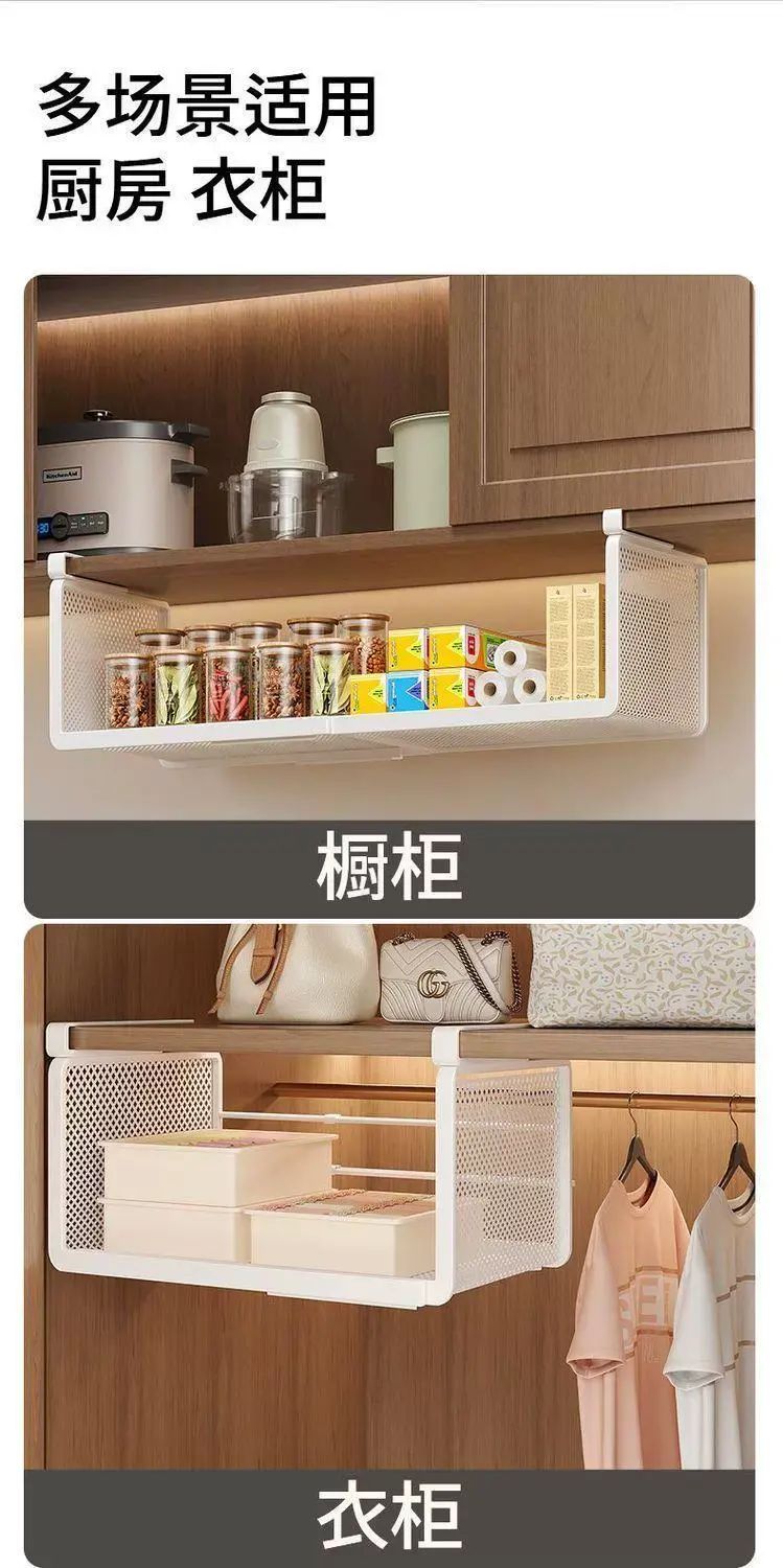 | Description | 可伸缩桌柜下挂篮宿舍厨房置物架收纳架子衣柜壁挂免打孔收纳神器;;颜色分类:白/层板小于3cm密网防坠落/高180mm |