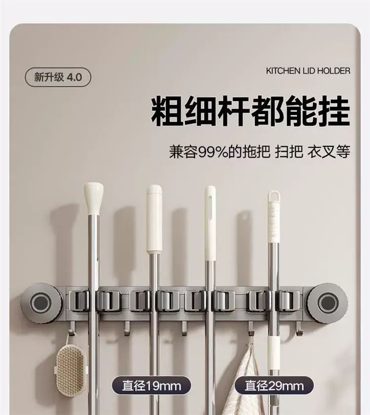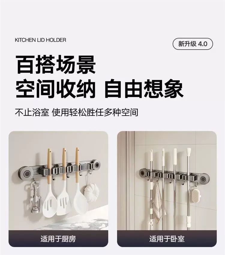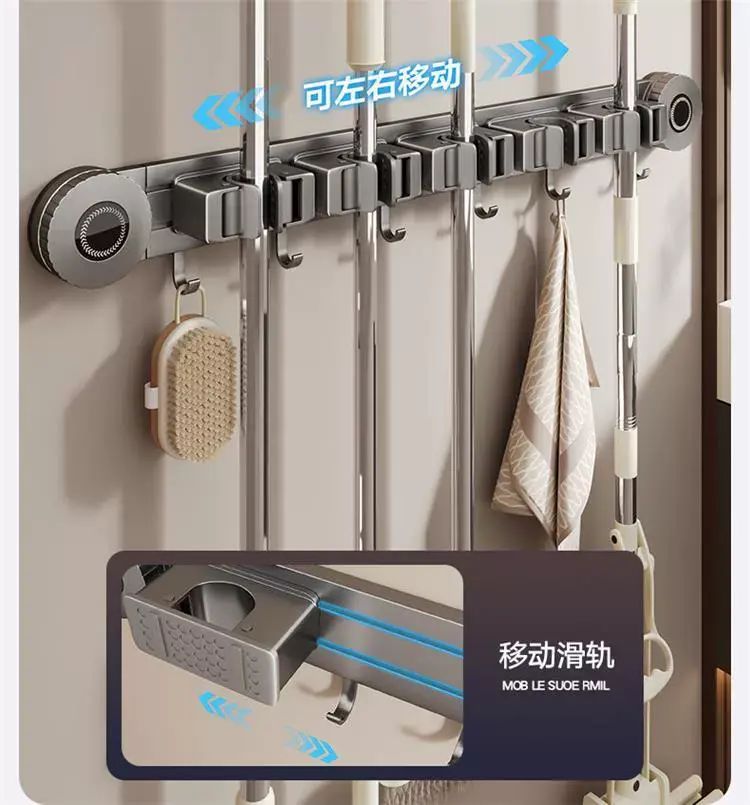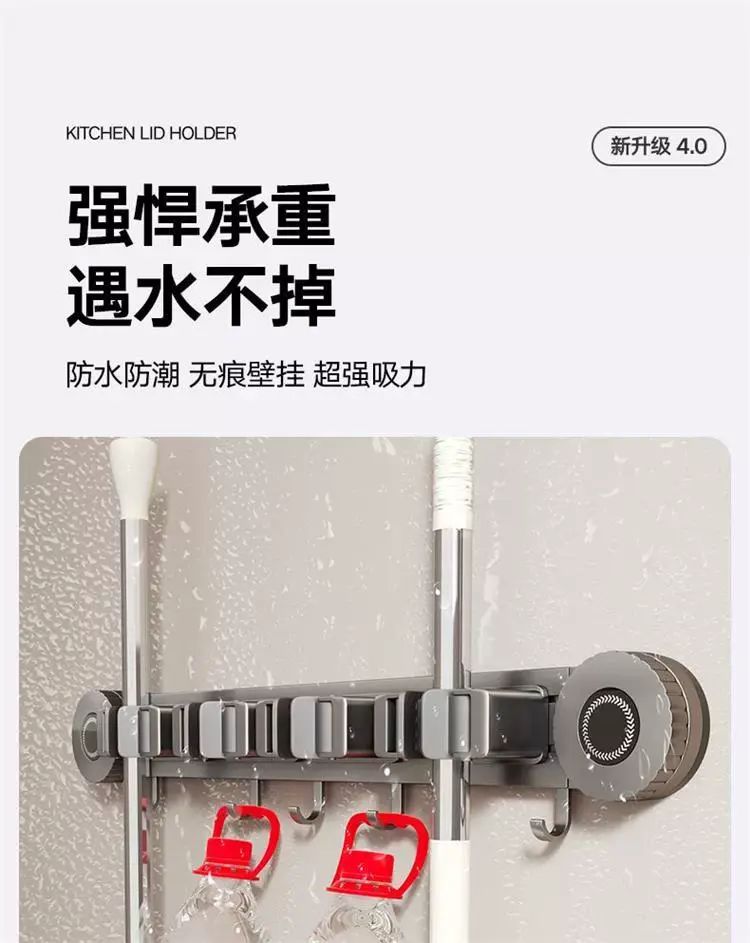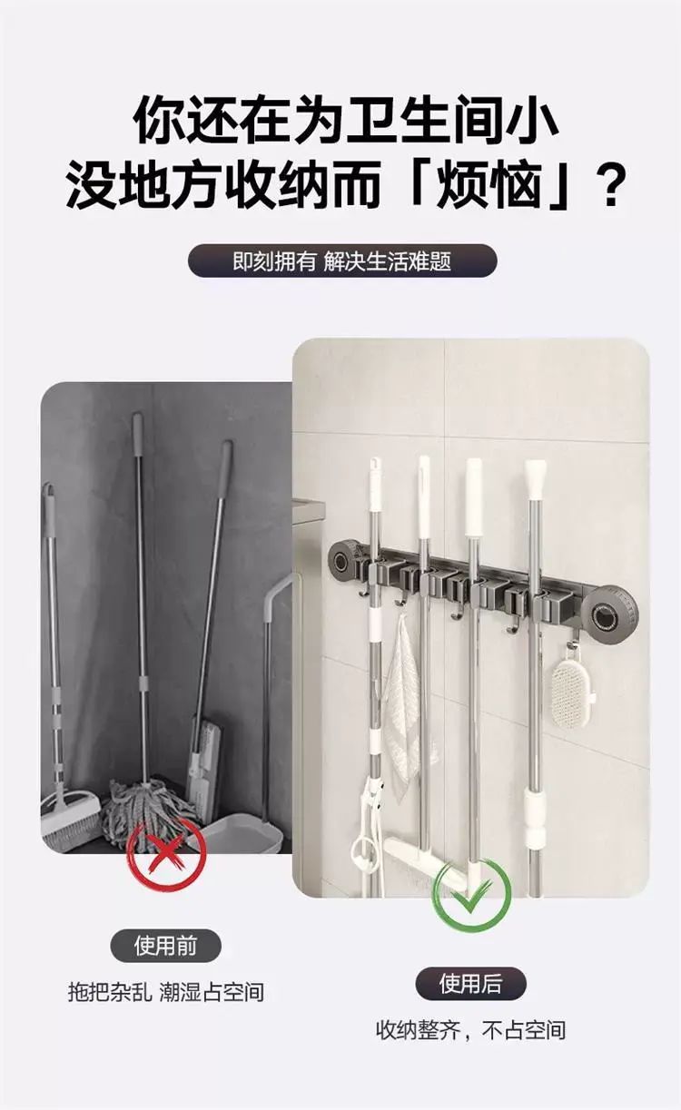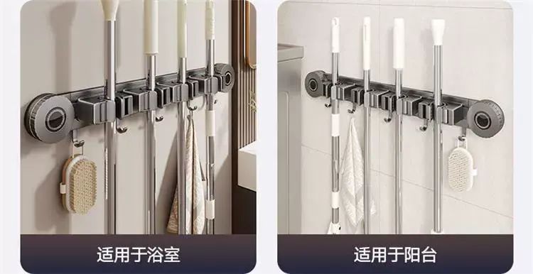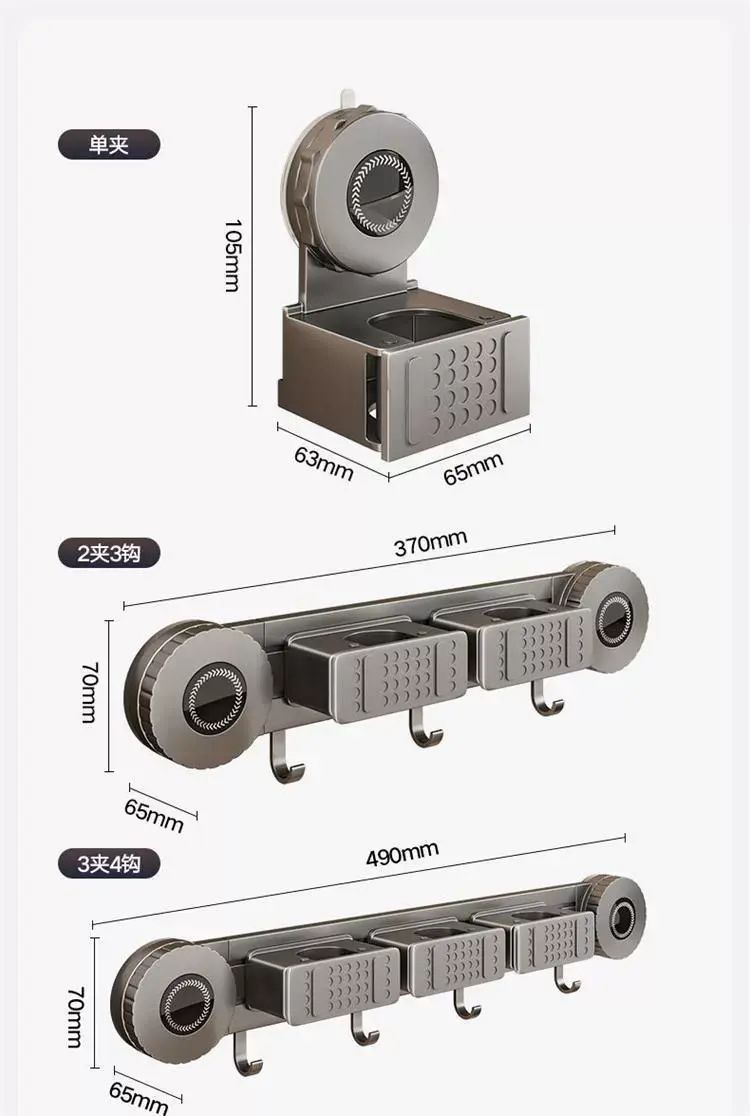 | Description | 吸盘拖把壁挂夹浴室卫生间拖布扫把挂钩固定置物架收纳神器;;颜色分类:枪灰-吸盘2夹3钩(夹位可移动) |