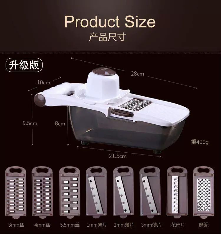 | Description | 多功能切菜器厨房萝卜刨丝器土豆切丝器切片器家用擦丝刨削片神器;;颜色分类:普通款(杏色) |