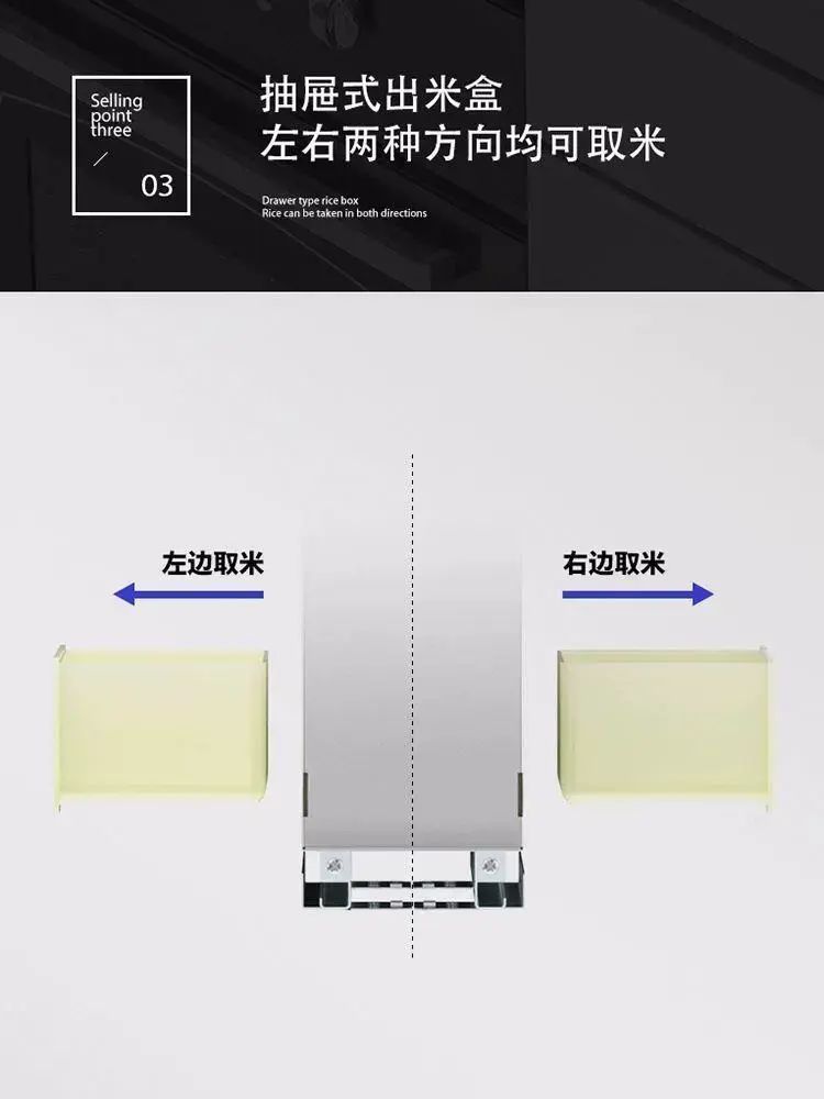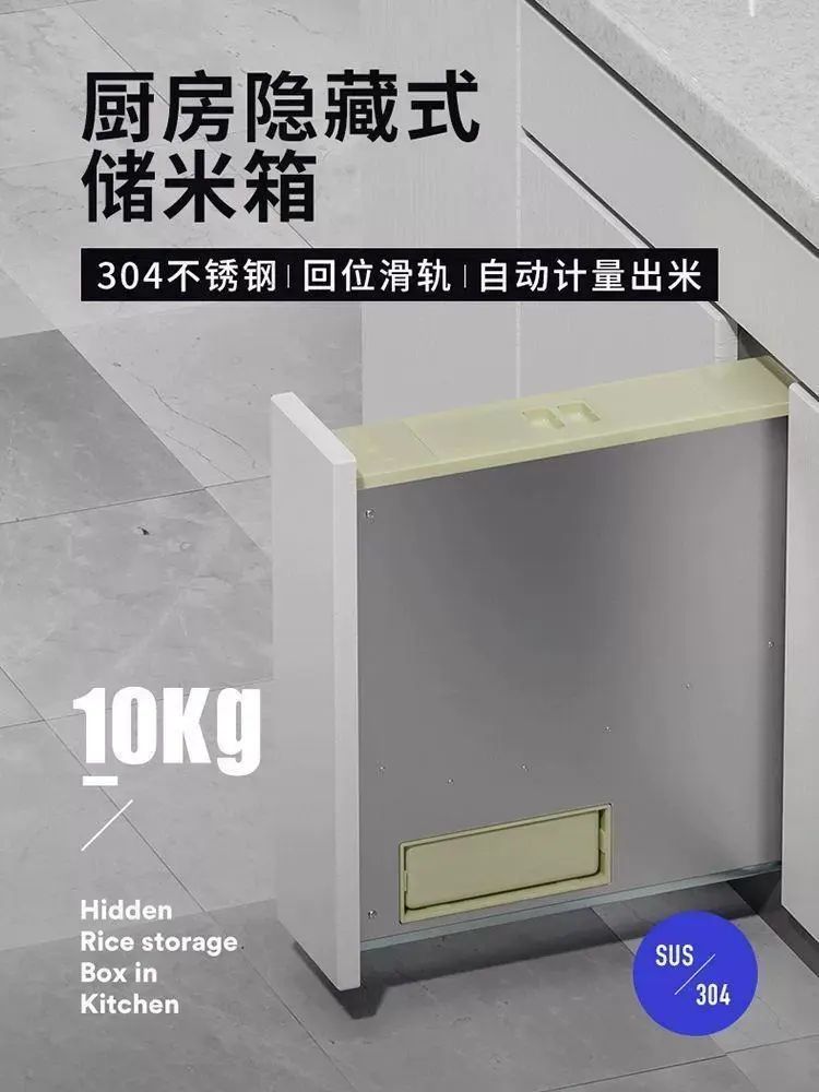 | Description | 家用厨房橱柜米箱米桶翻盖储米箱防潮304不锈钢嵌入式面箱抽屉式;;颜色分类:新款304不锈钢200柜隐藏式米 |