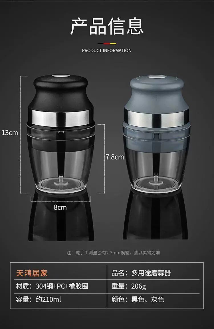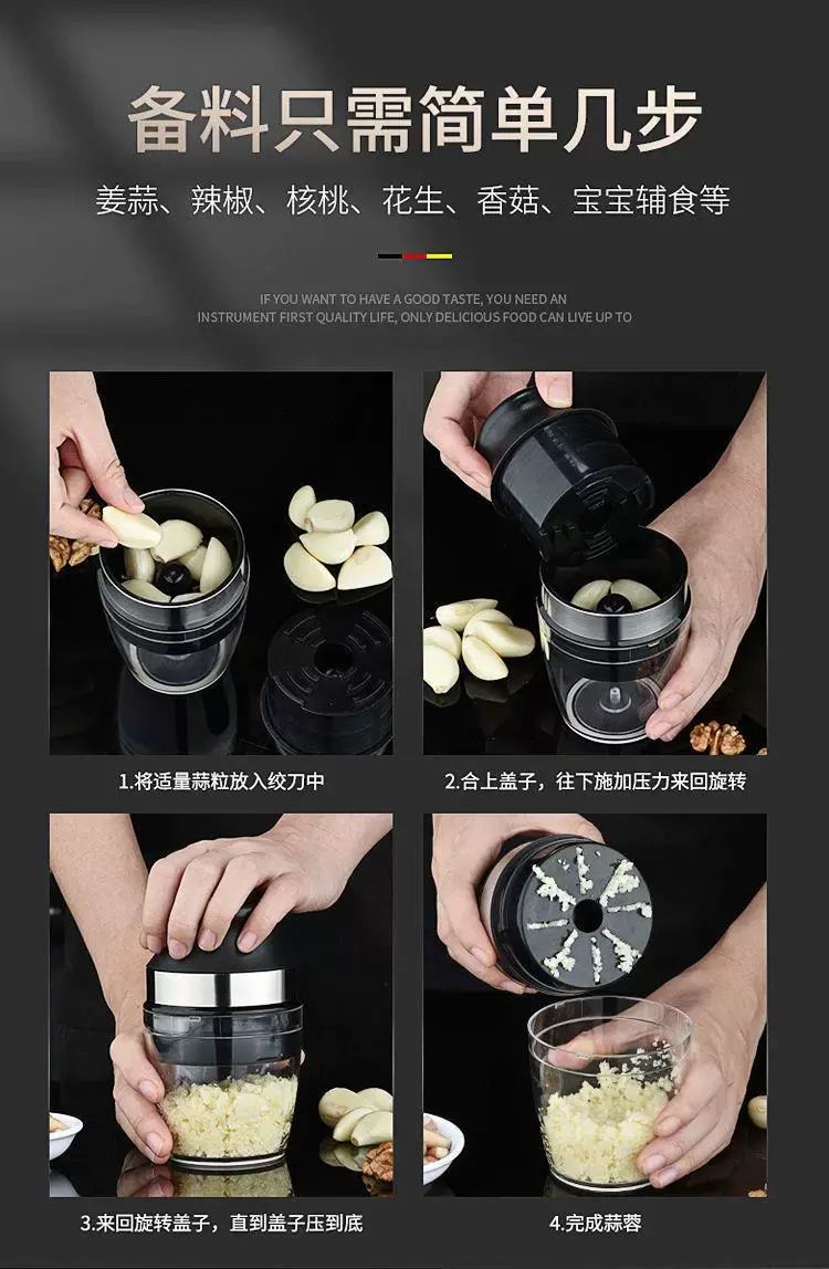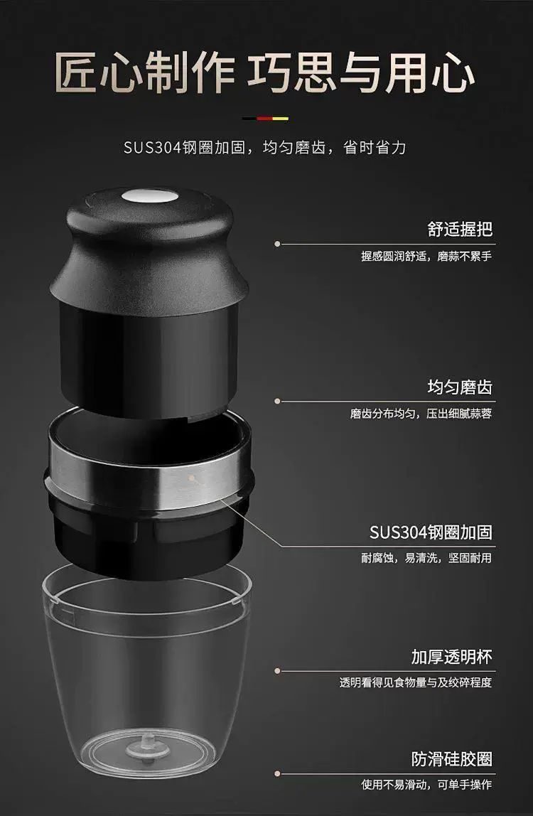 | Description | 家用按压式蒜蓉器捣蒜机儿童辅食器姜蓉蒜泥器迷你打蒜器绞肉蒜器;;颜色分类:黑色 |