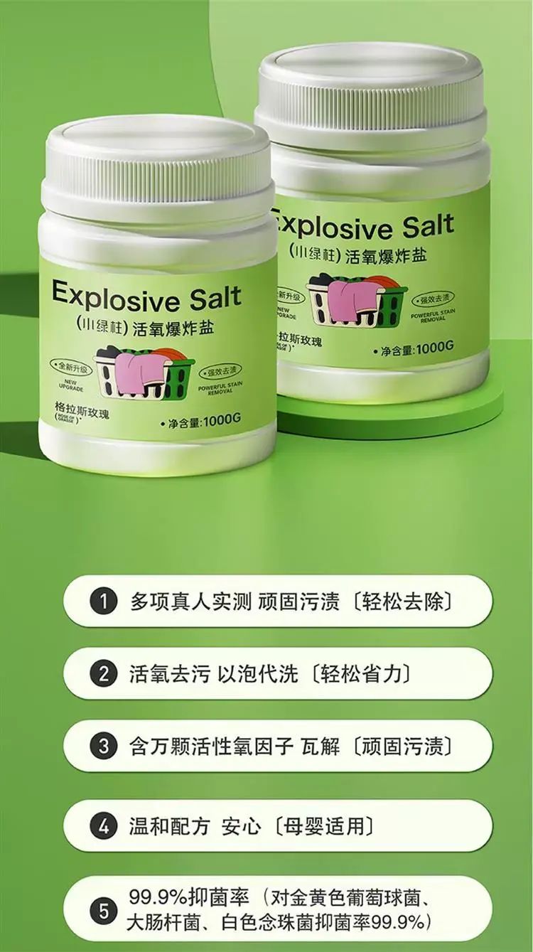 | Description | 小绿柱格拉斯玫瑰爆炸盐洗衣去污渍强力去黄增白彩漂粉衣物神器;;颜色分类:爆炸盐100g |