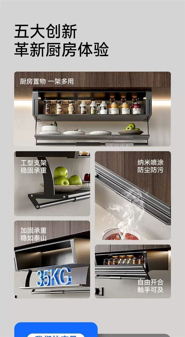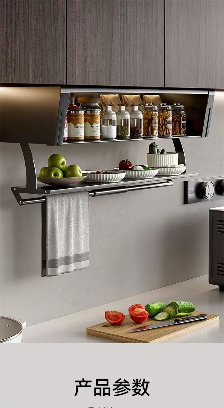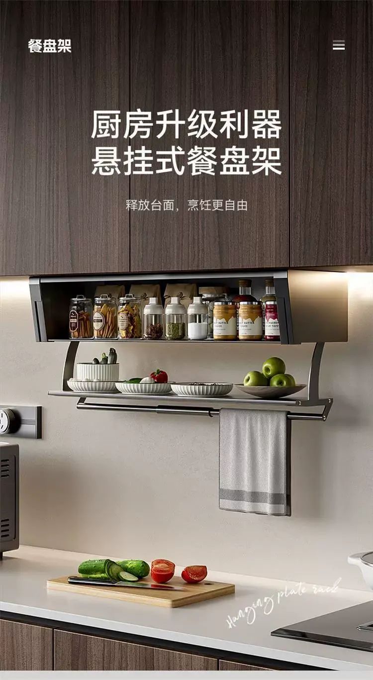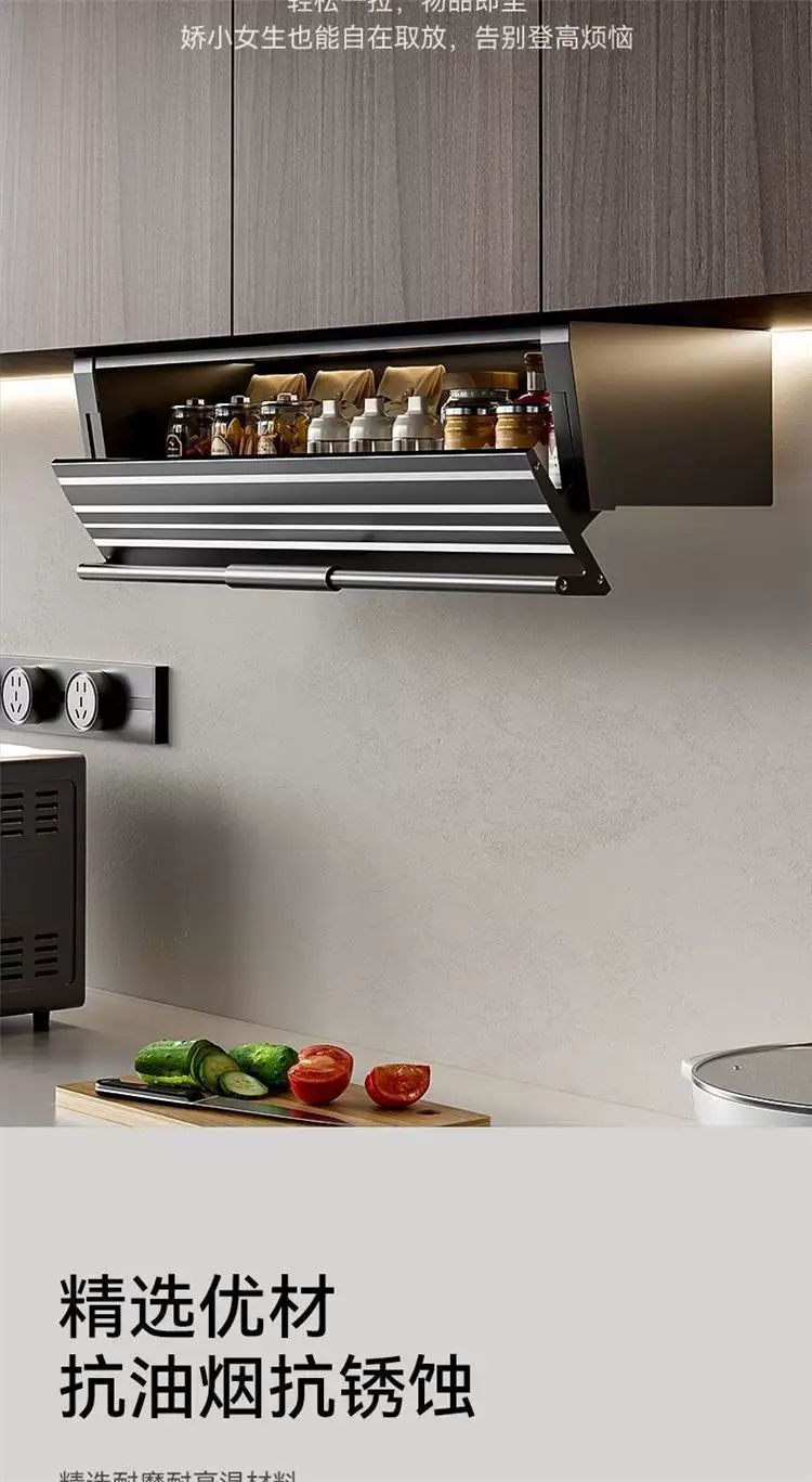 | Description | 厨房吊柜下拉式调料架调料盒挂墙壁挂式折叠储物架碗碟太空舱拉篮;;颜色分类:【吊柜置物架餐盘架】400柜 |