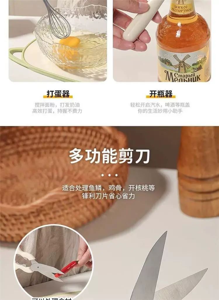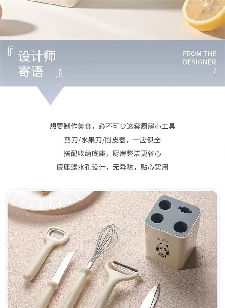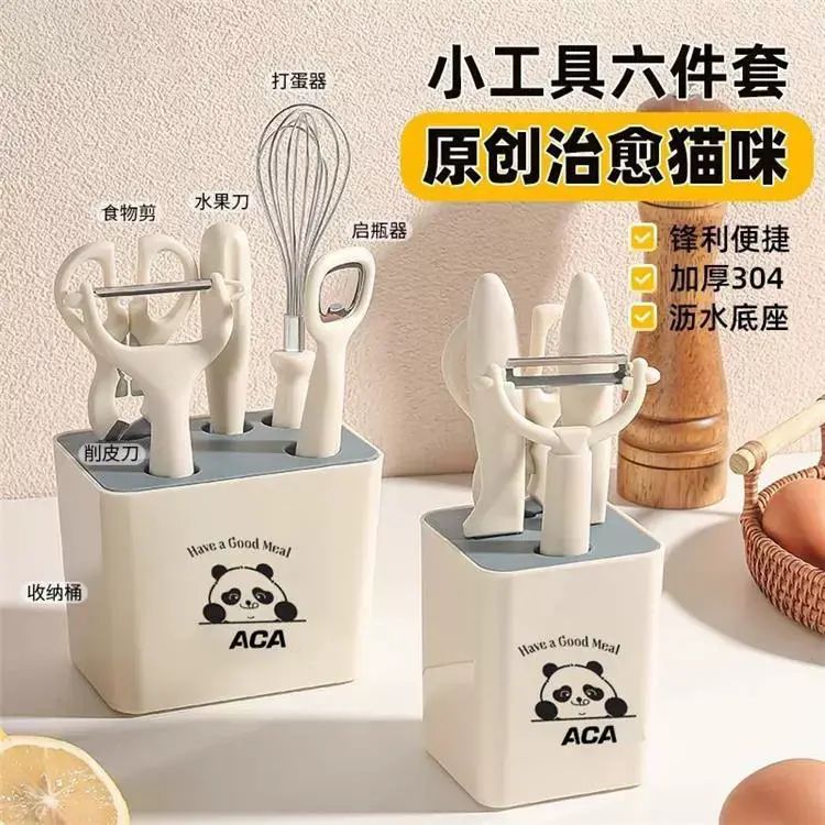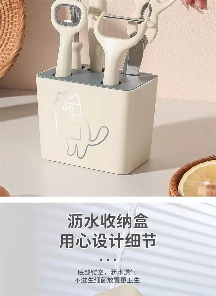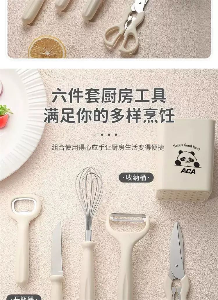 | Description | 厨房小工具6件套组合家用网红厨房剪刀水果刀开瓶器削皮刀套装;;颜色分类:ACA5件-圆头刀尖头刀 |