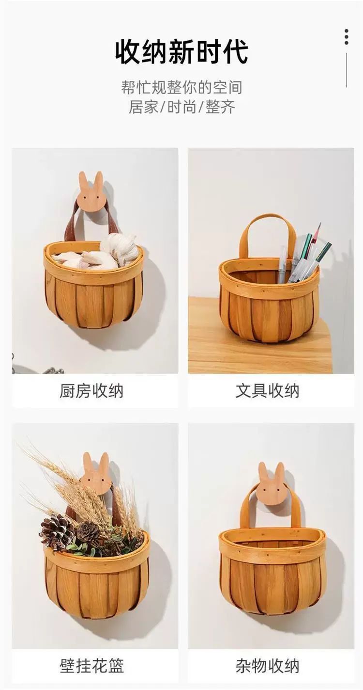 | Description | 厨房蒜姜收纳姜蒜挂篮小篮子手工编织竹编篮装饰筐壁挂式家用挂钩;;颜色分类:皮把手大小号各1件+星星挂钩 |