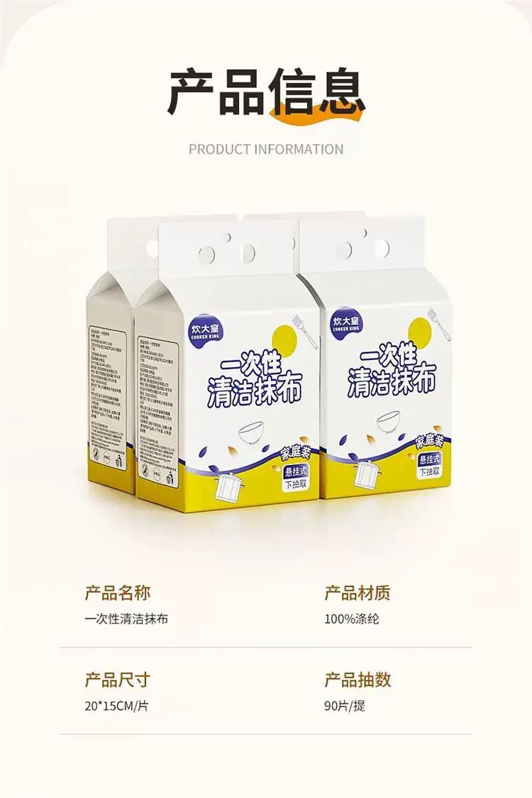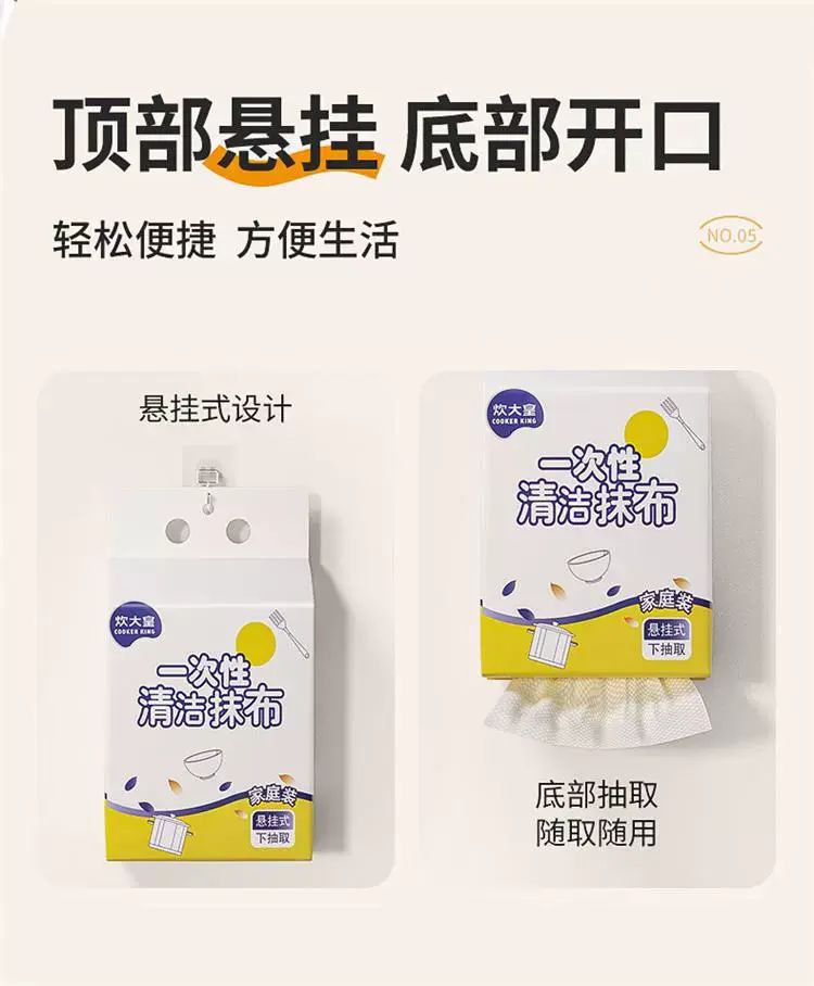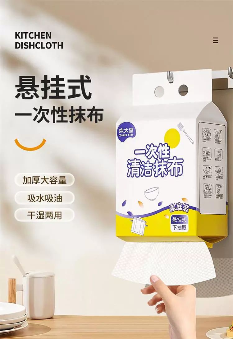 | Description | 懒人抹布5提厨房加厚悬挂式纸巾一次性洗碗布吸水吸油;;颜色分类:【干湿两用】悬挂抽取 |