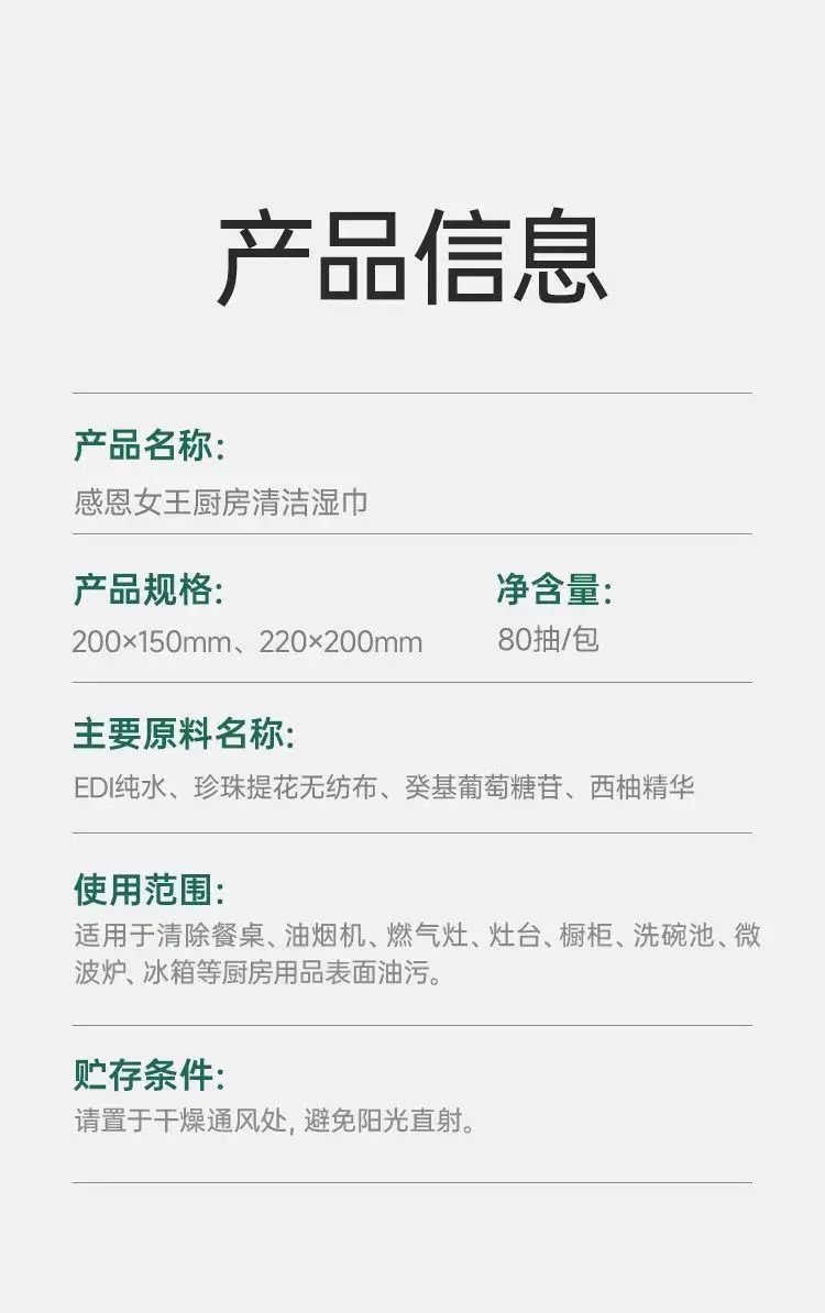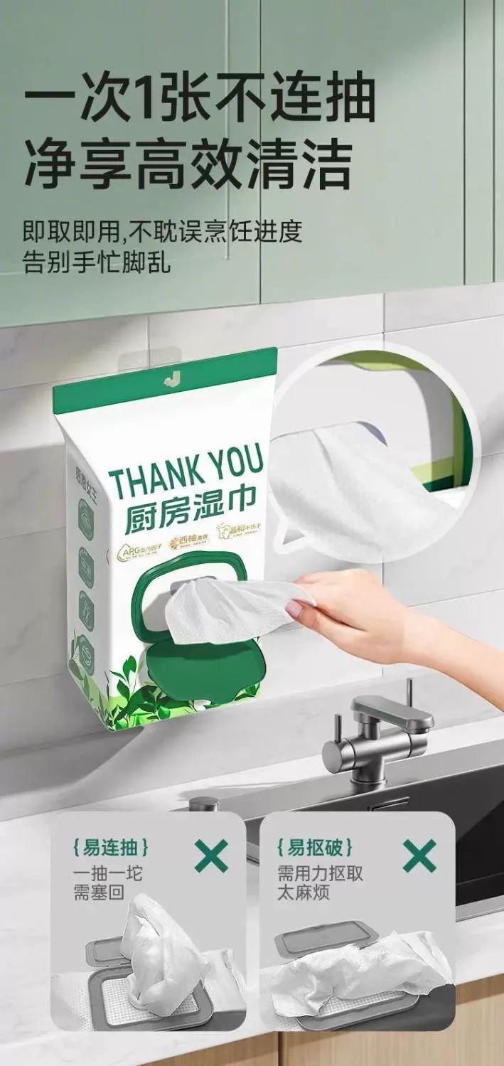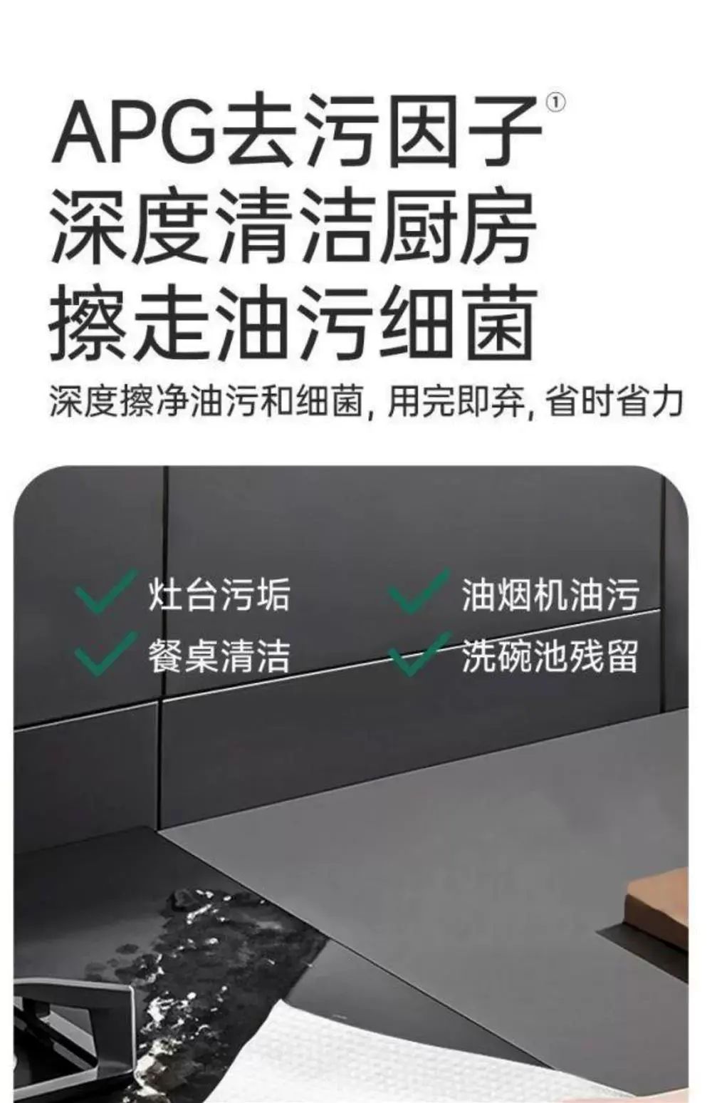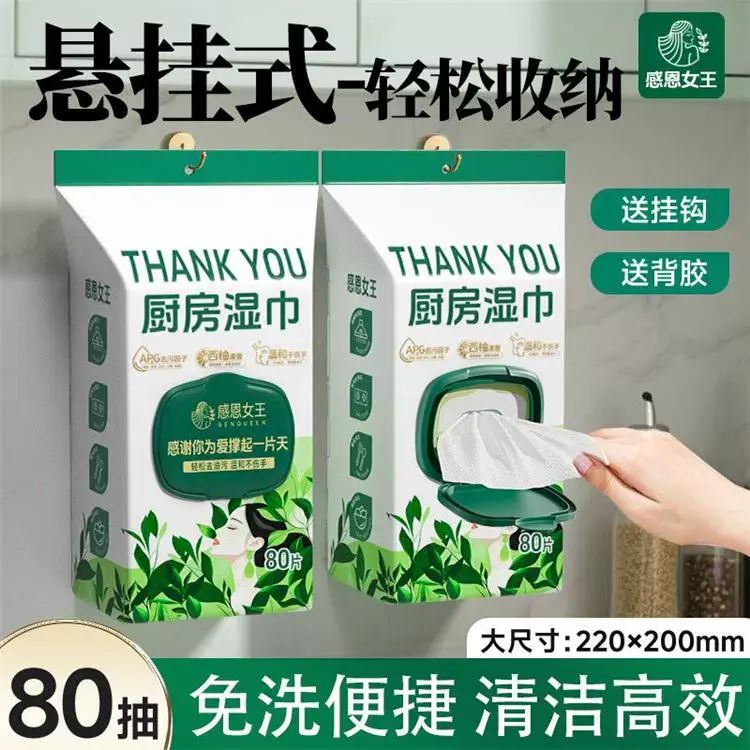 | Description | 悬挂厨房湿巾6包加大加厚去油去污家用清洁专用强力去油污湿巾纸;;颜色分类:200*220mm【加大尊享 |