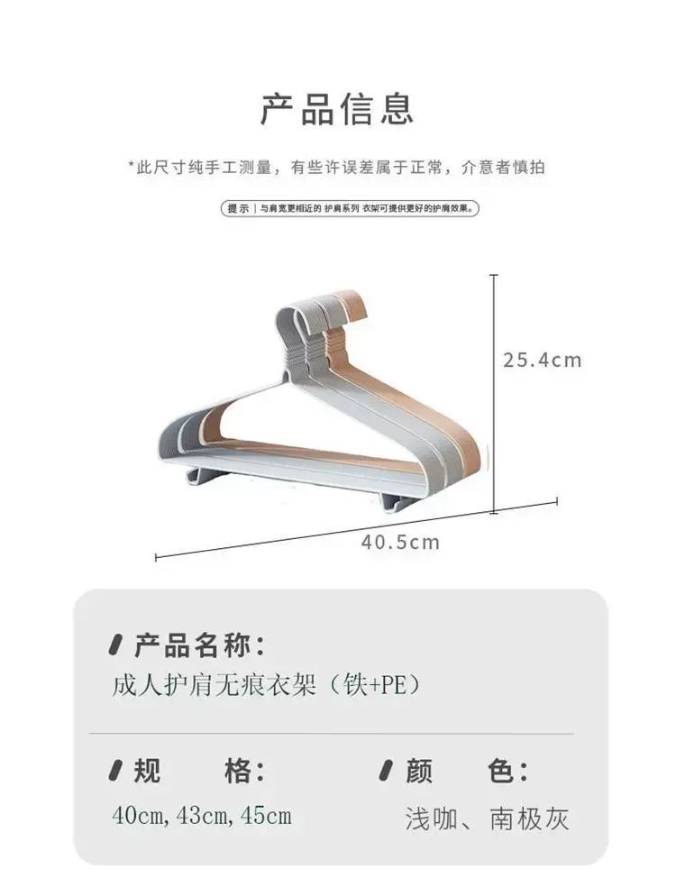 | Description | 成人护肩衣架加粗加长无痕晾晒宽肩家用宿舍撑子多带钩商超衣挂;;颜色分类:【纸卡护肩款】45cm带钩【蓝灰色】_20支装 |