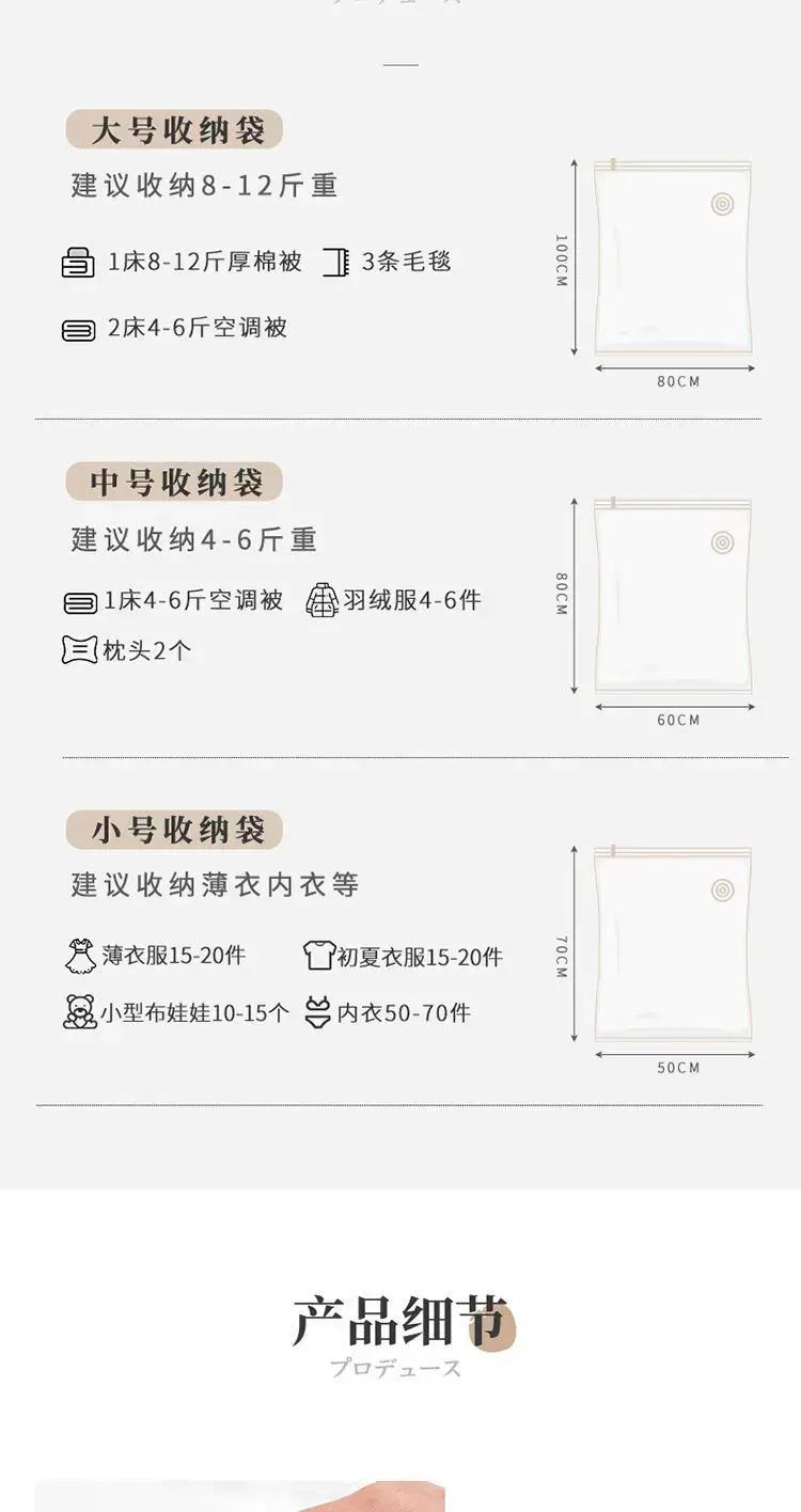 | Description | 手卷旅行免抽气真空便携收纳袋整理行李箱手卷袋压缩袋套装;;颜色分类:10个大号+手泵 |